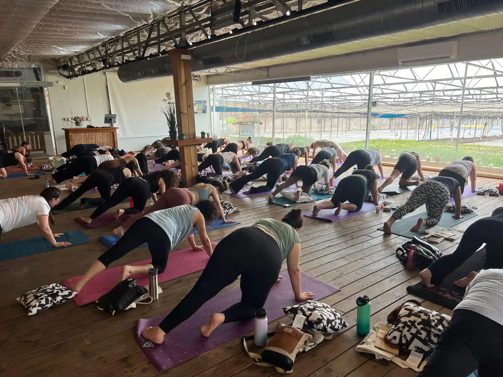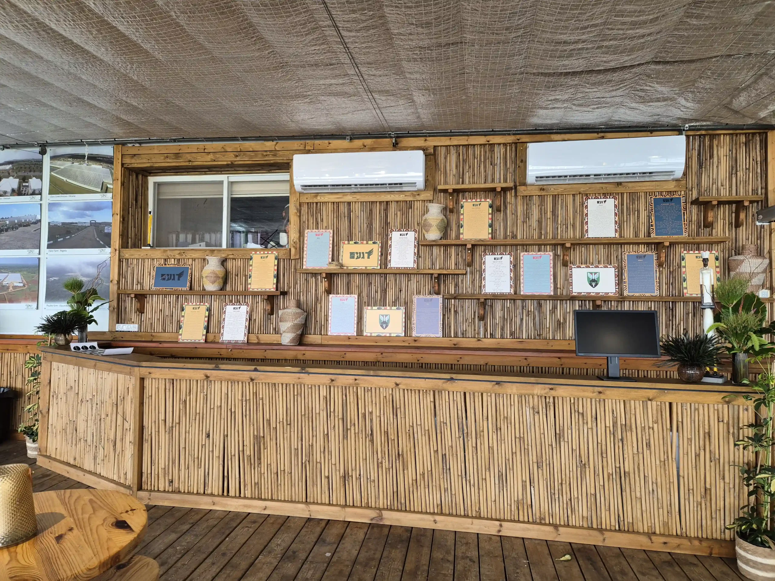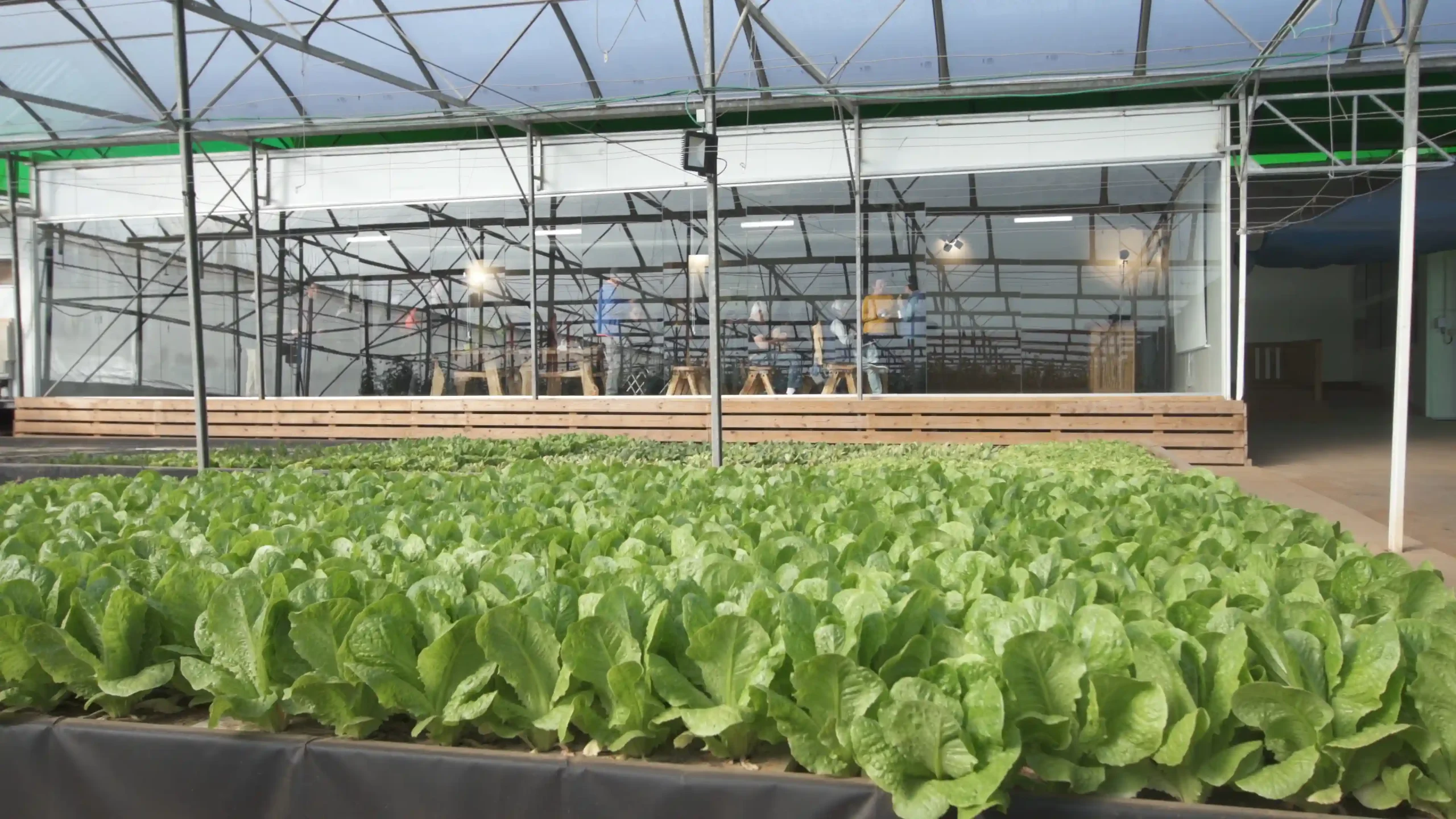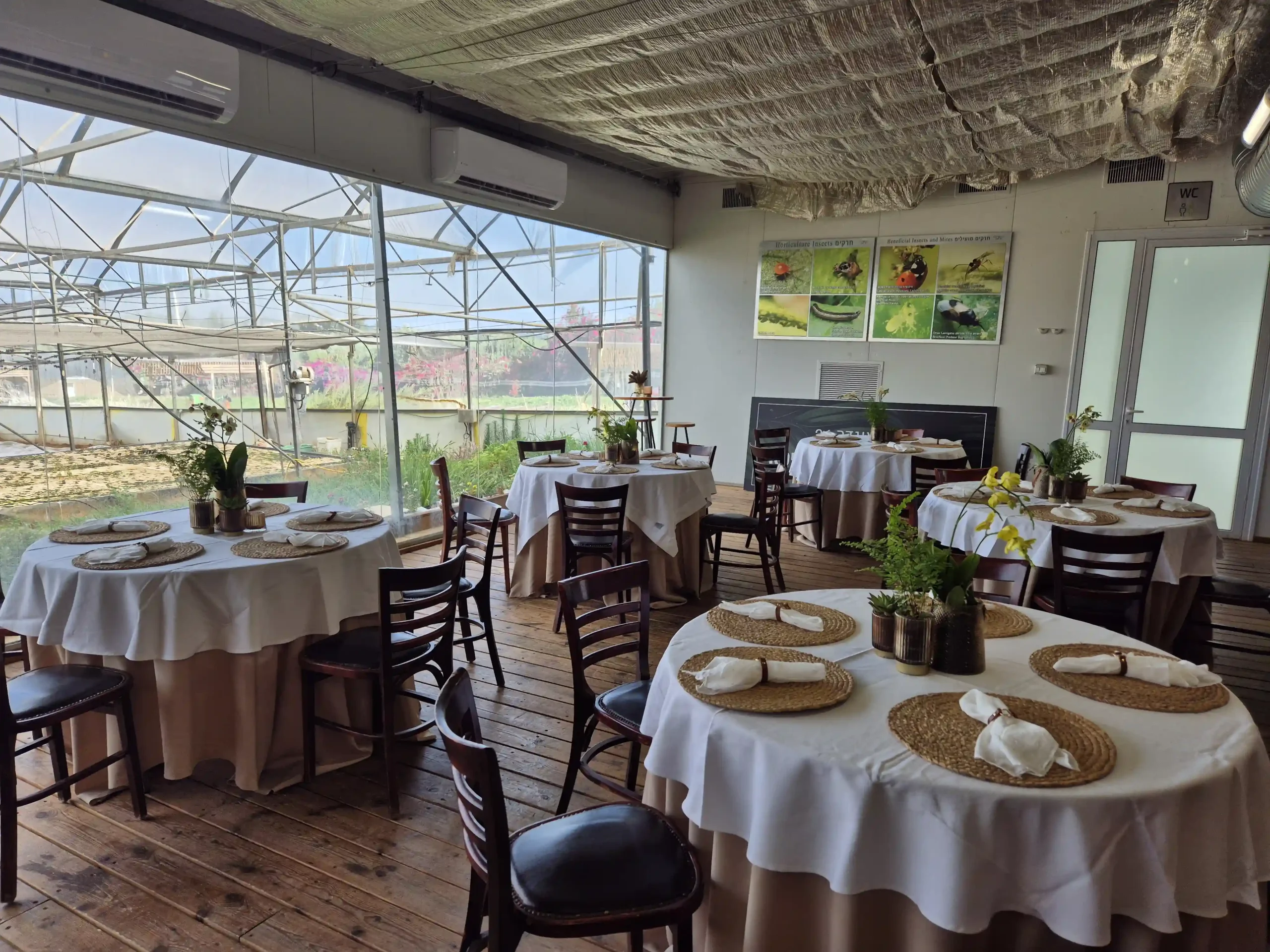 חלל האירוח המהמם שלנו נבנה בתוך החממה וכולל ויטרינה שקופה הצופה אל הגידולים בחממה, מרגישים את הטבע מרגע הכניסה לחווה וגם במהלך הישיבה בחלל המקורה.