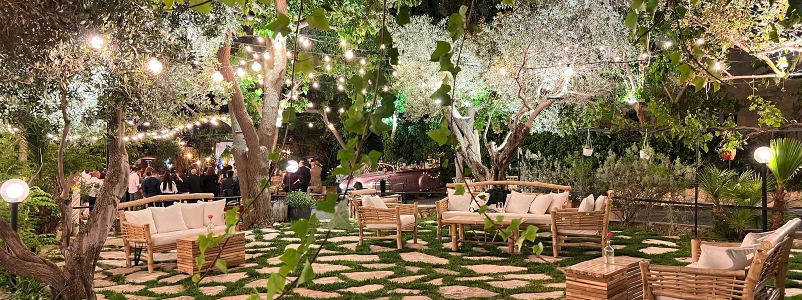 המפות המעוצבות העציצים עם הגיבסניות הלבנות שעושות פרפרים בלב, הטרסות, והעצים מסביב הופכים אותו למתחם אירופאי וחגיגי.
