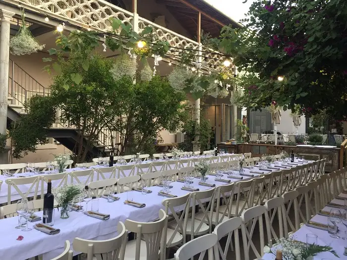 במקום ישנה רחבה חיצונית לחופות וקבלת פנים, מתחם פנימי לאירועים וארוחות