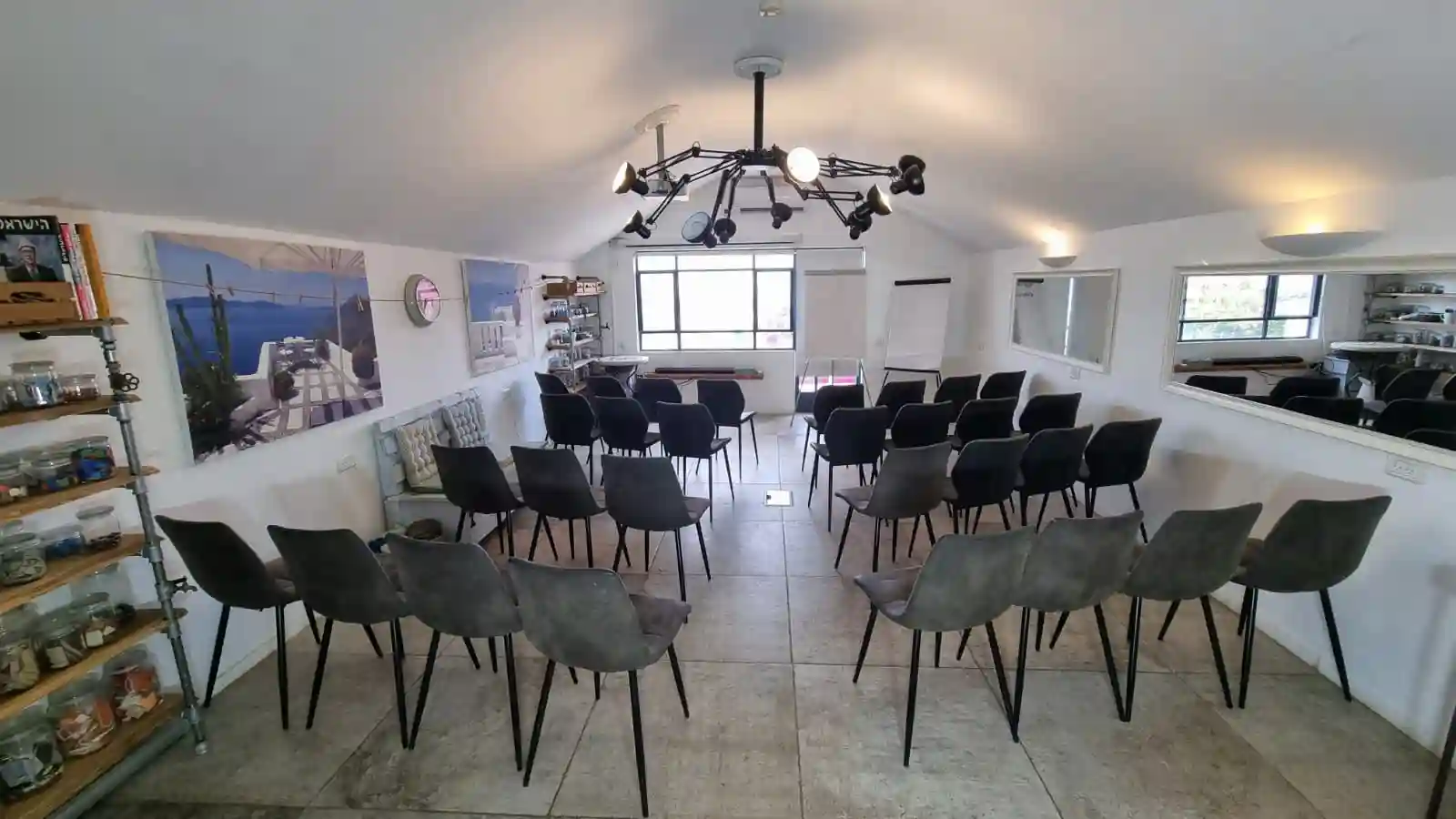 החדרים הייחודיים מעוצבים בסגנונות המאפשרים גמישות – ישיבה סביב שולחן, ישיבה בגורן, או סידור תאטרון, עם תפוסת אנשים שונה בכל חדר.