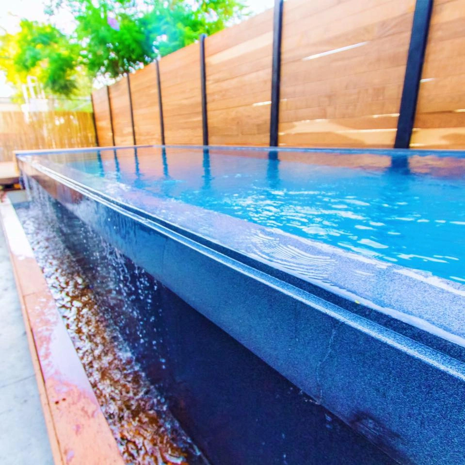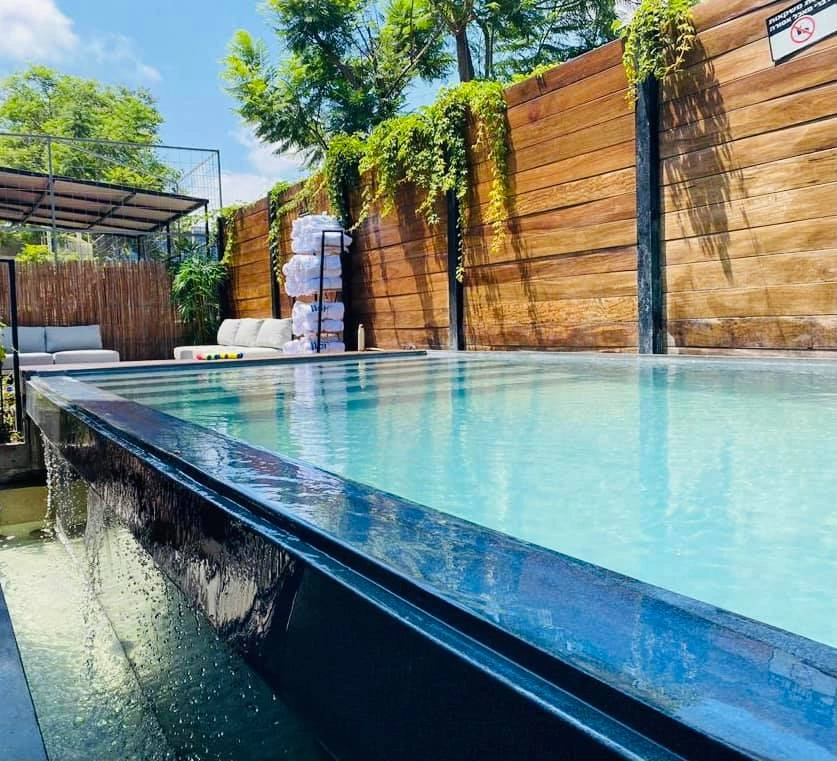 עם גינה, בריכת שחיה חיצונית, הצללה, מפל מים