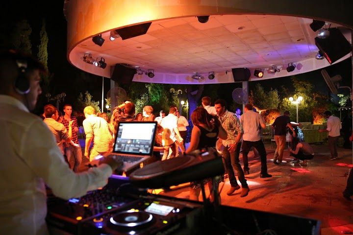 בגן מדשאה ירוקה על שפת הבריכה, רחבה גדולה ומרוצפת ואיזור ריקודים עם תקרה אקוסטית ומערכות הגברה ותאורה.