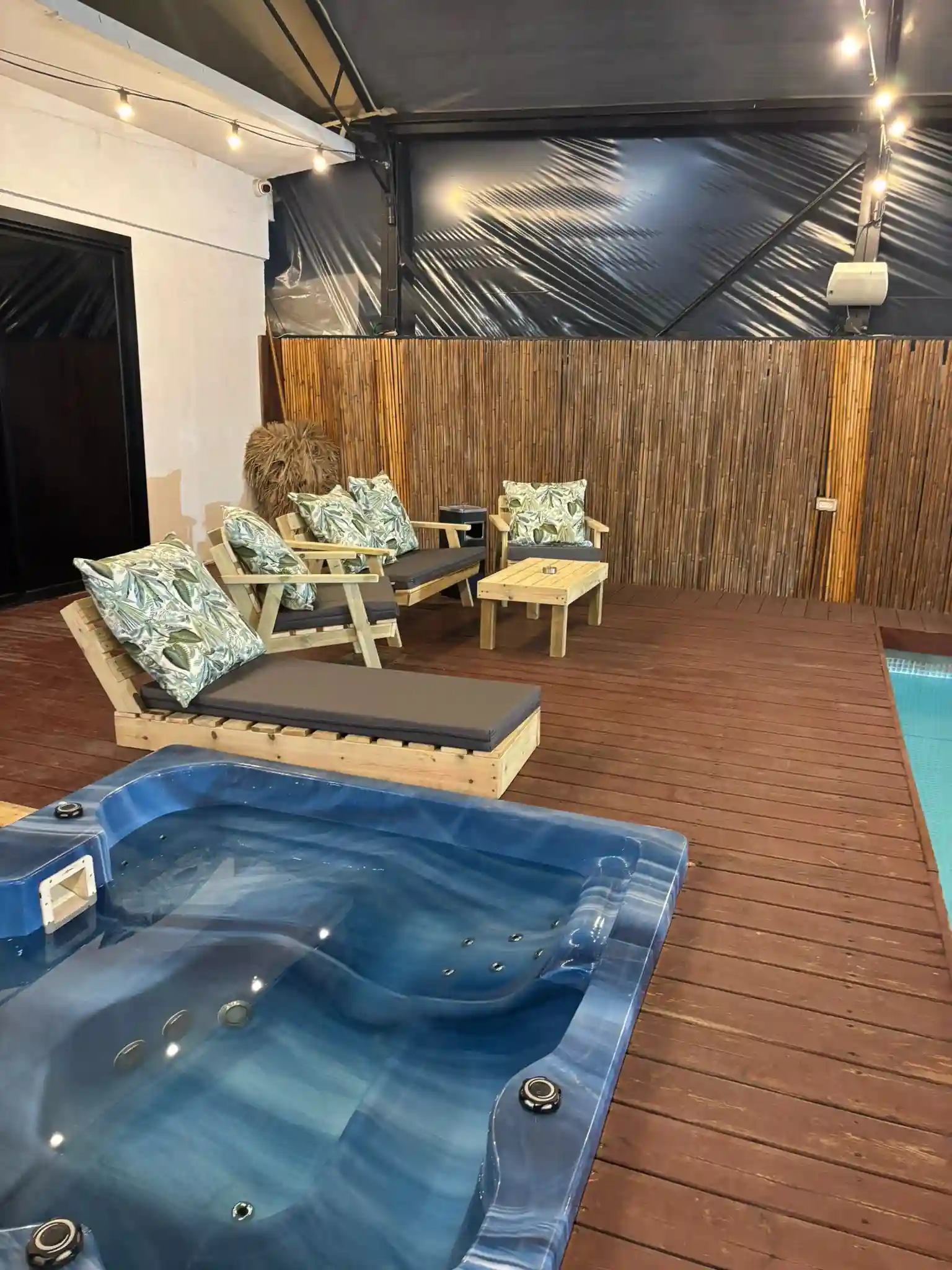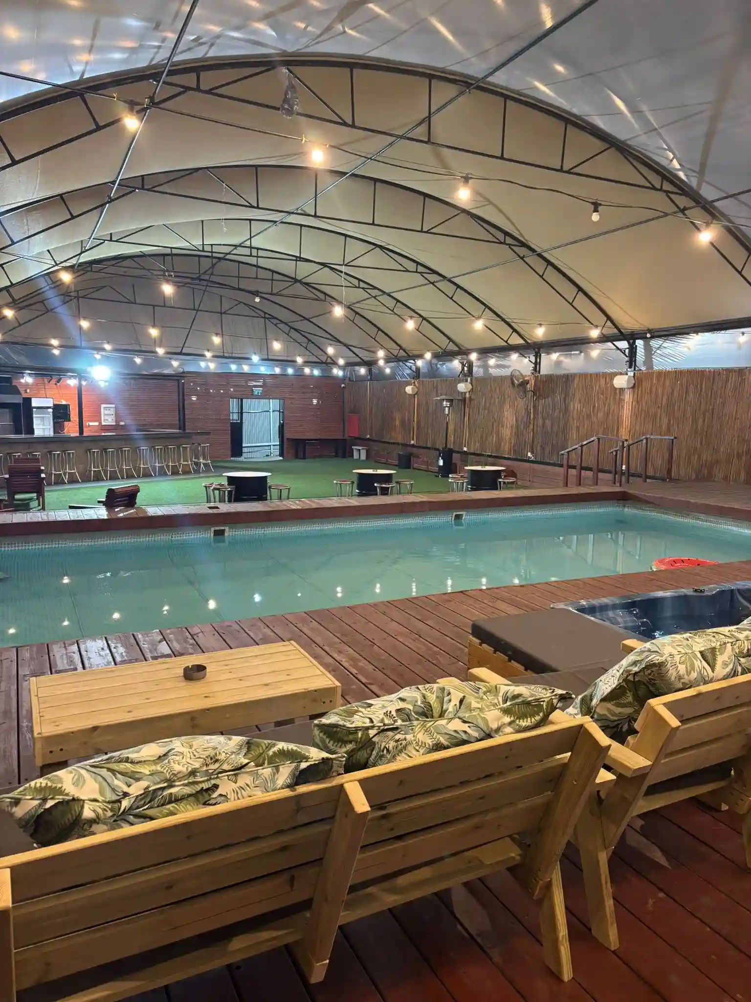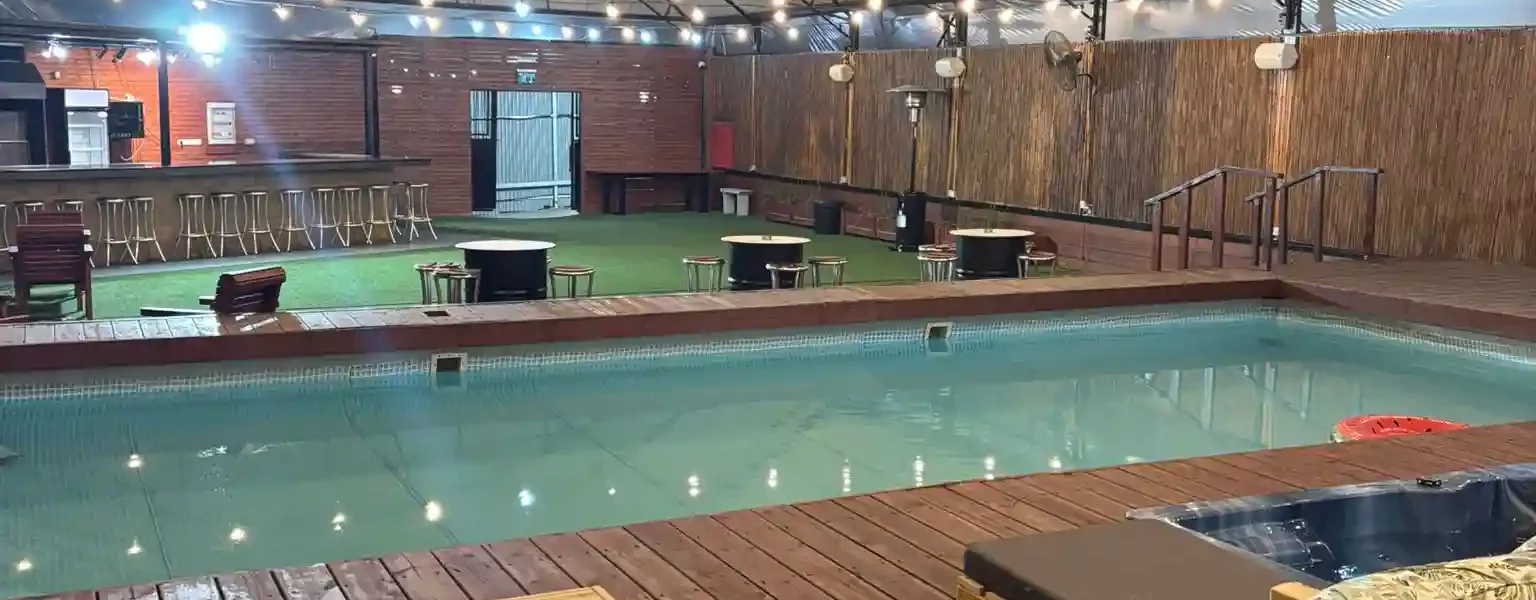 במתחם תיהנו מבריכה גדולה מפנקת, פינות ישיבה ומיטות שיזוף מזמינות, מערכת מולטימדיה מתקדמת הכוללת קריוקי, בר חיצוני ענק עם כיסאות נוחים, תאורה לילית קסומה, עמדת מנגל איכותית ועוד.