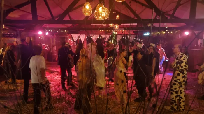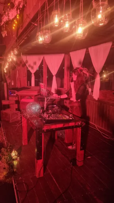 המתחם פנים הוא חלל מוקף עץ, רצפת עץ, בר עשוי מעץ עם במה, שולחנות, כסאות, הגברה, תאורה, מקרן, מסך וכל האמצעים המושלמים לאירוע כיפי ומיוחד.