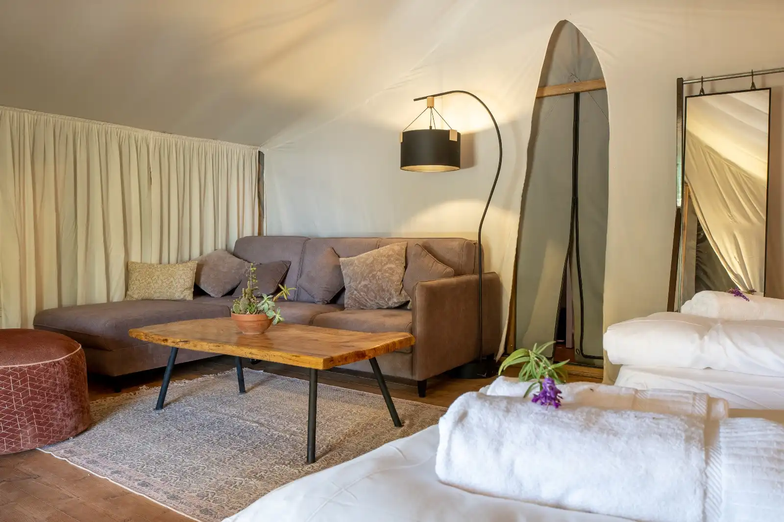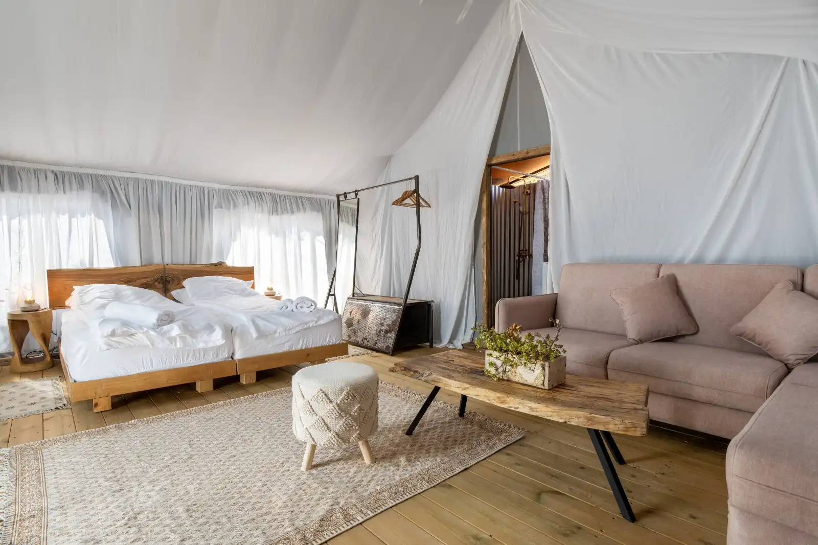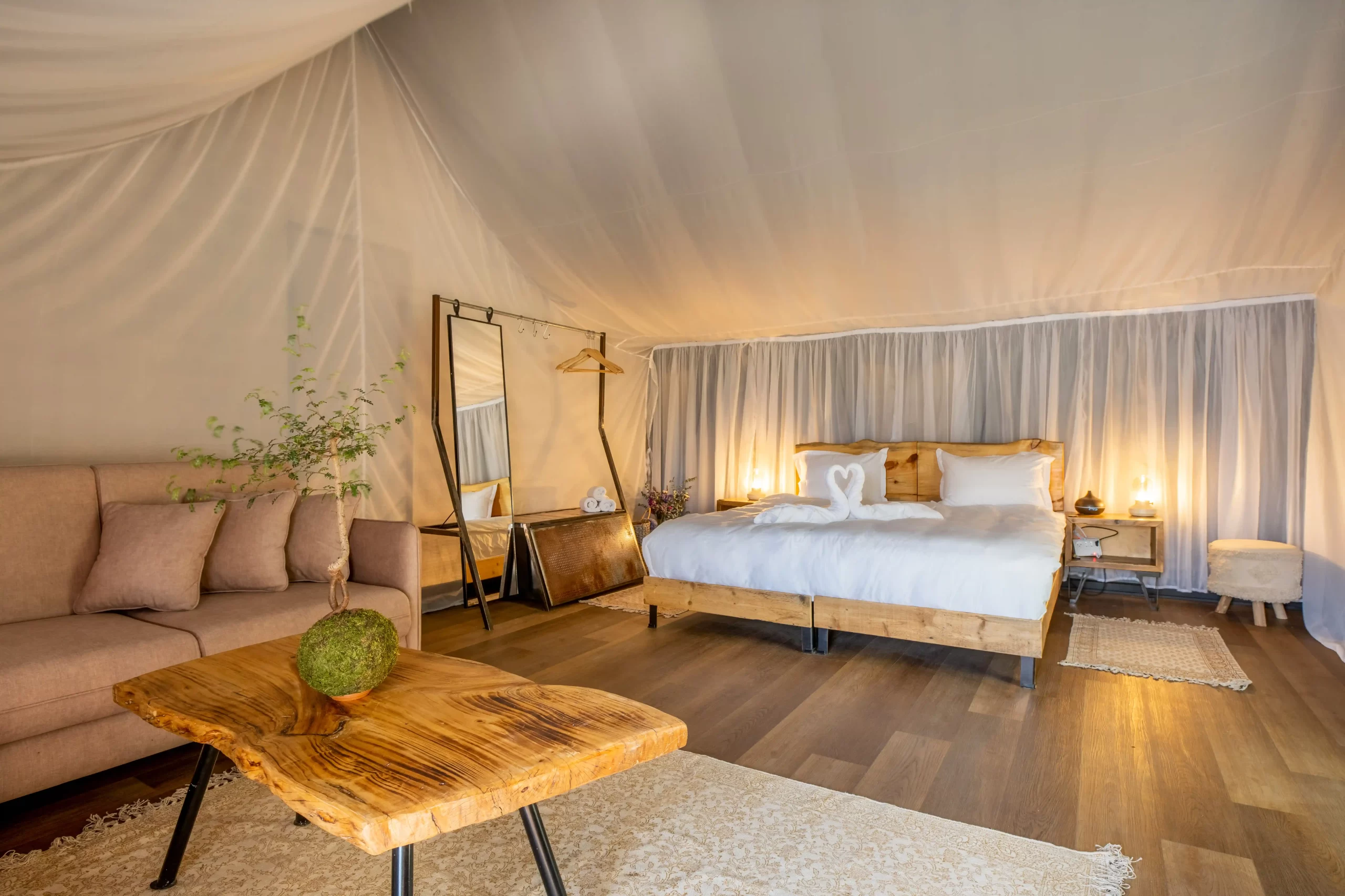 בכל האופציות ניתן לסיים את האירוע בהתפנקות ובכיף בלינה באוהלי גלאמפינג מפוארים לעד 80 אורחים.