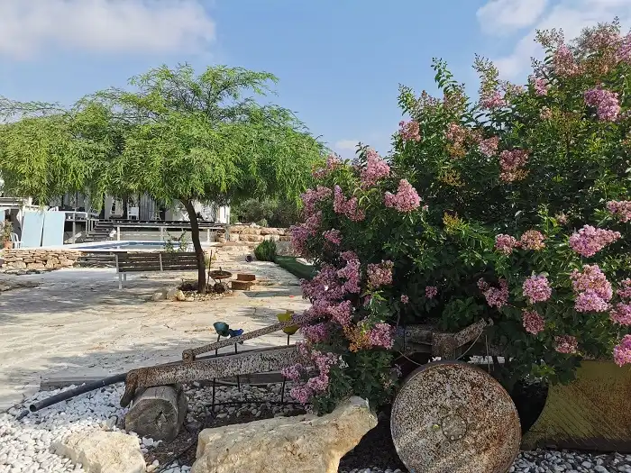 משק יוקרתי עם עצים ארץ ישראלים, משק מפותח עם עצי פרי בכל עבר, נוף פסטורלי טבעי
