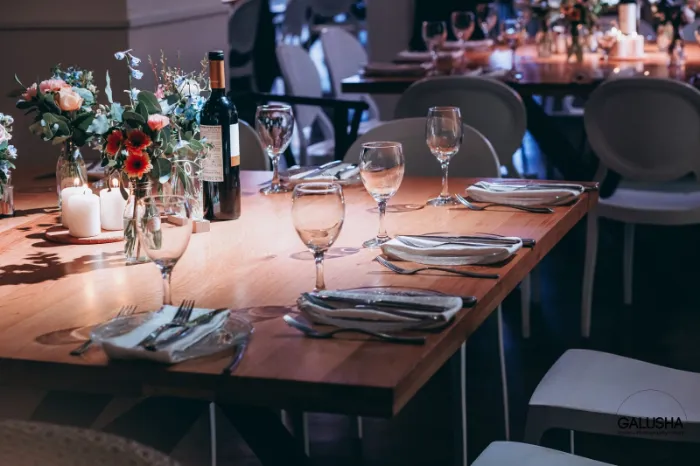 אוכל מבית היוצר של שף המקום, עם מטבח בשרי כשר, אפשרות למהדרין, פינות ישיבה בכל מקום, שולחנות, כסאות , רחבת ריקודים עם התאורה וההגברה ההמשוכללת שיש כיום בארץ להציע.