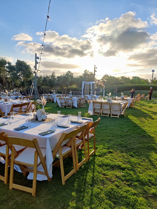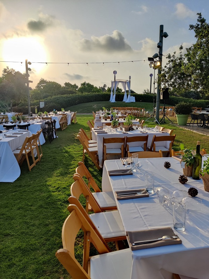 מתחם אירועים מלא בירוק, עצים מכל הסוגים, מתחם מטופח להפליא, צמחיה בכל מקום