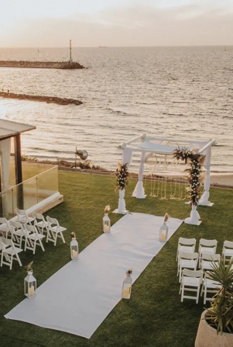 אולם וגינה לאירועים קסום וייחודי יושב וצופה על חוף הים הכי יפה במזרח התיכון.