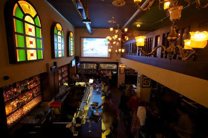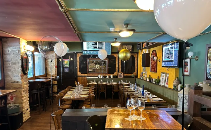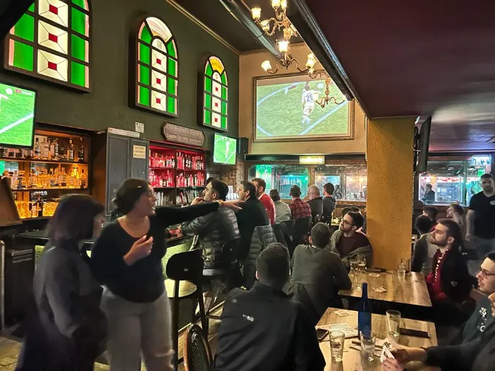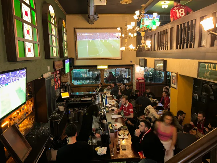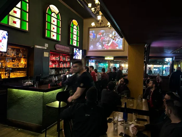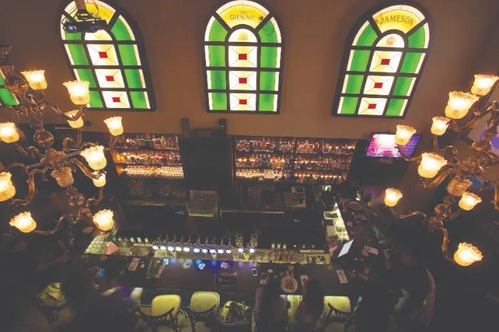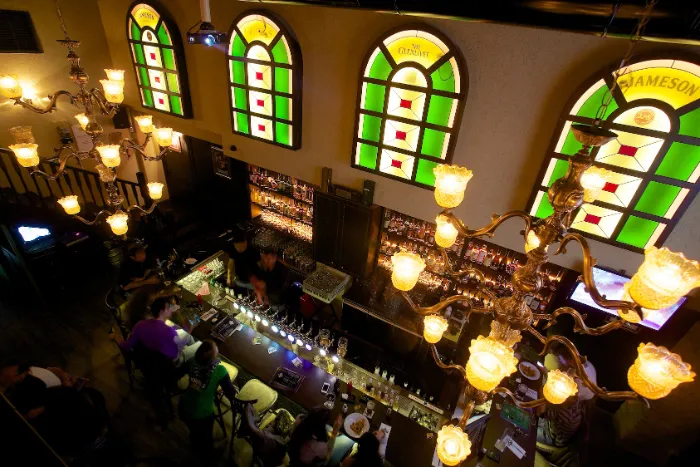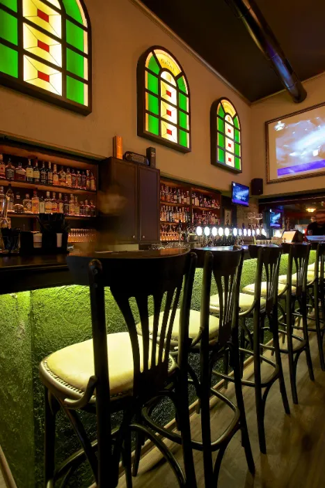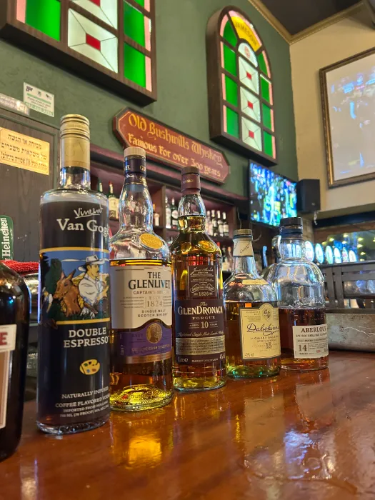אנגלית. המקום מאויר בפינות ישיבה מעץ, חלונות מאוירים ומיוחדים ומוארים בתאורה אחורית ובצבעים של אירלנד. את האווירה הזו אי אפשר לפספס.