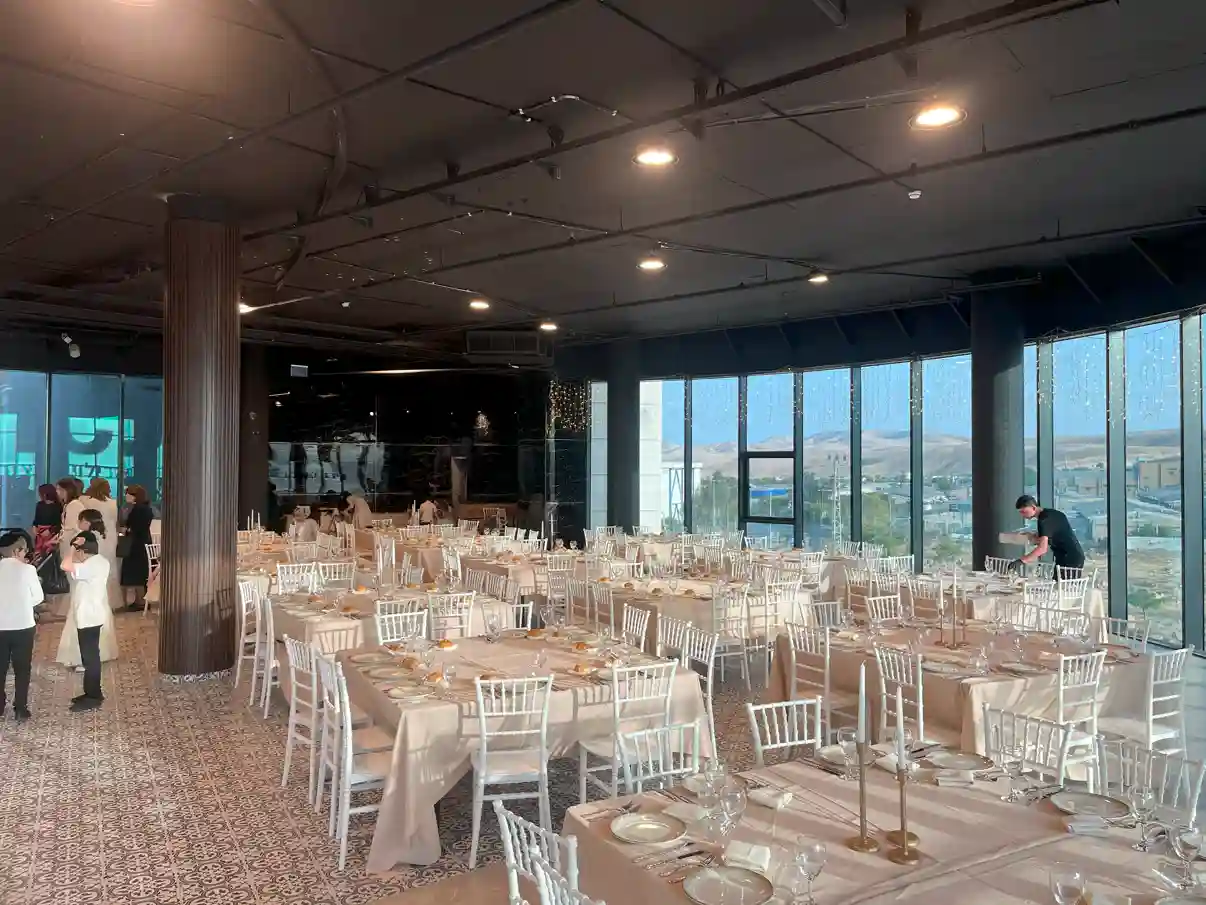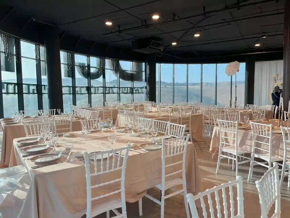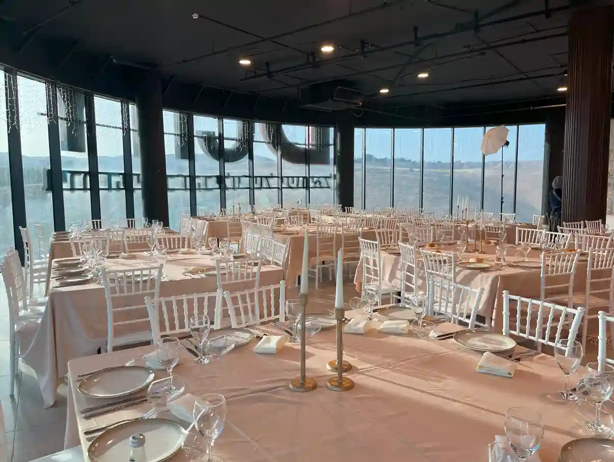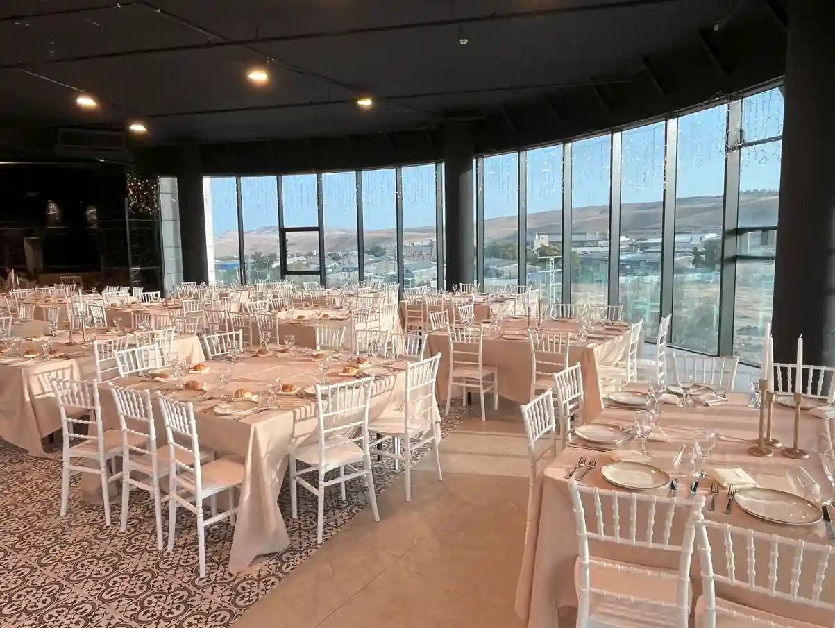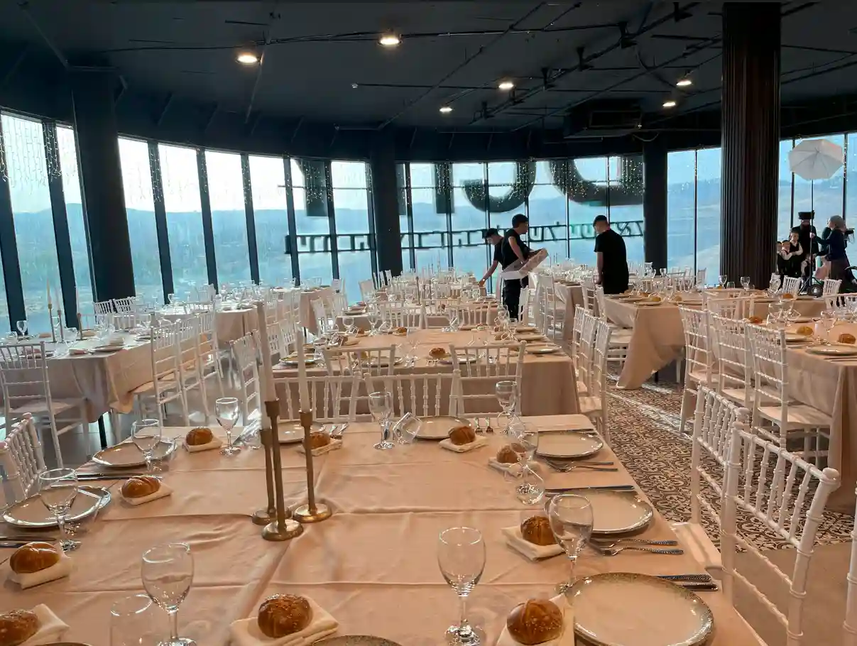 לאולם היפהפה קירות שקופים ונוף פנורמי עוצר נשימה, שמוסיפים לאווירה המיוחדת.