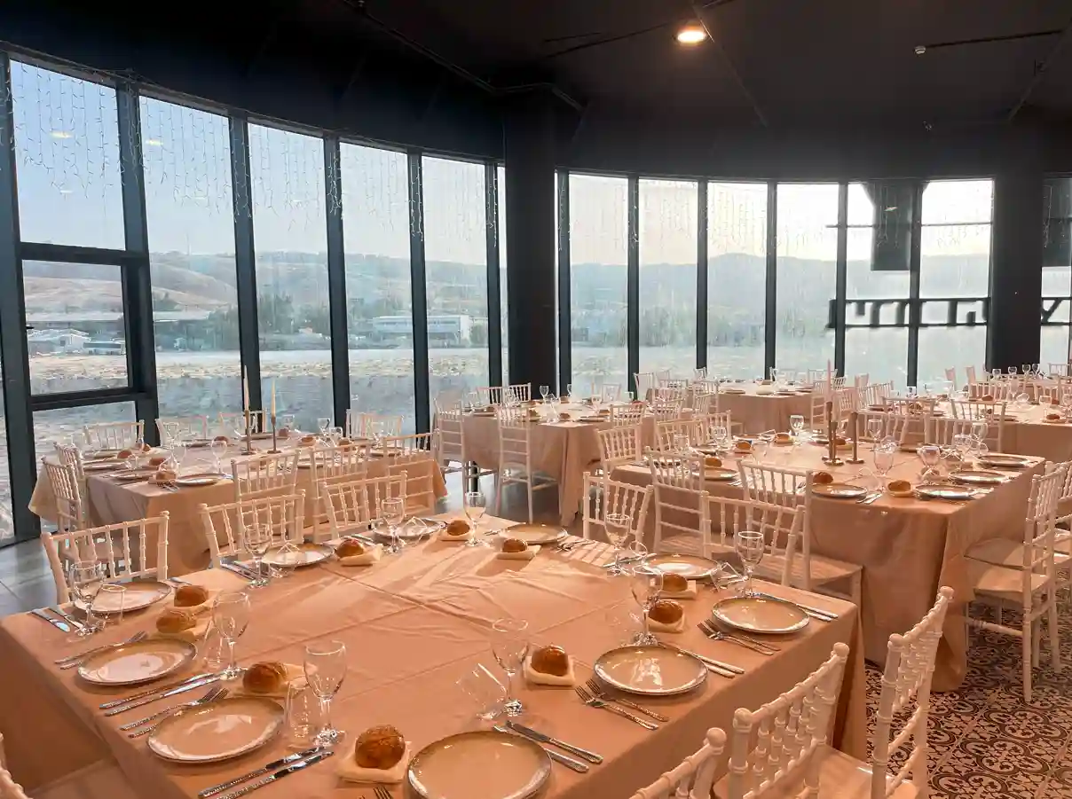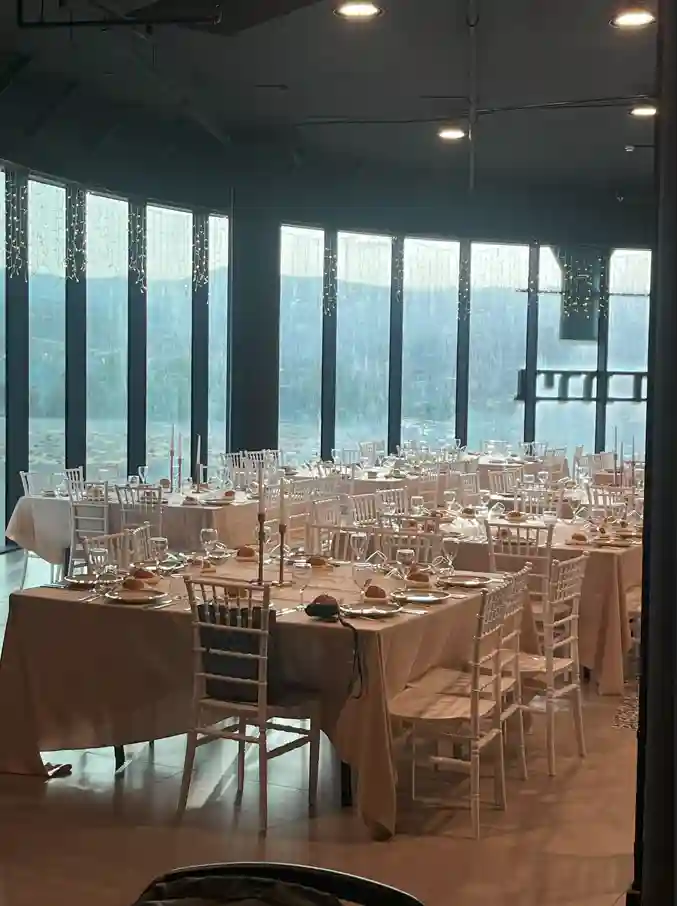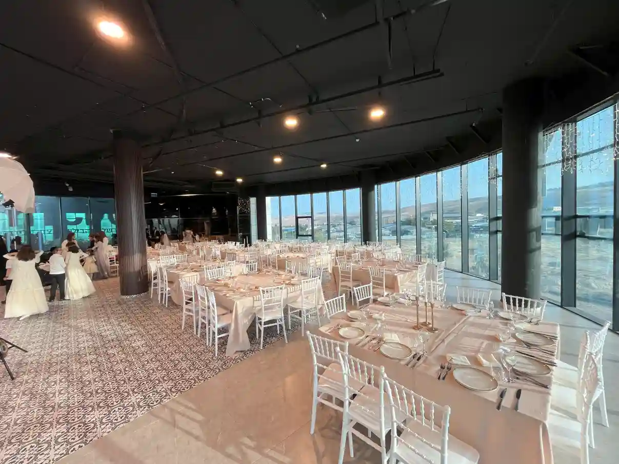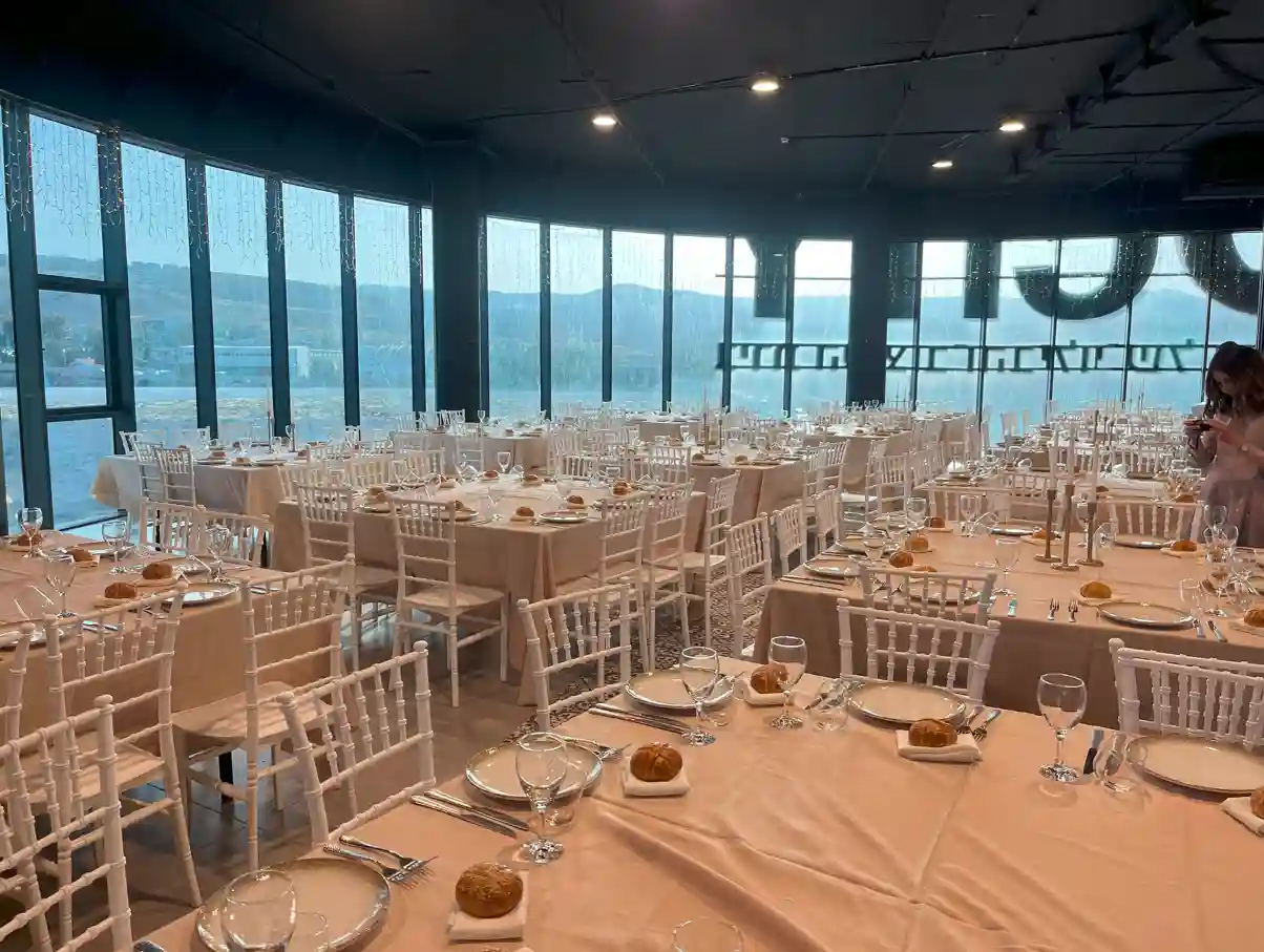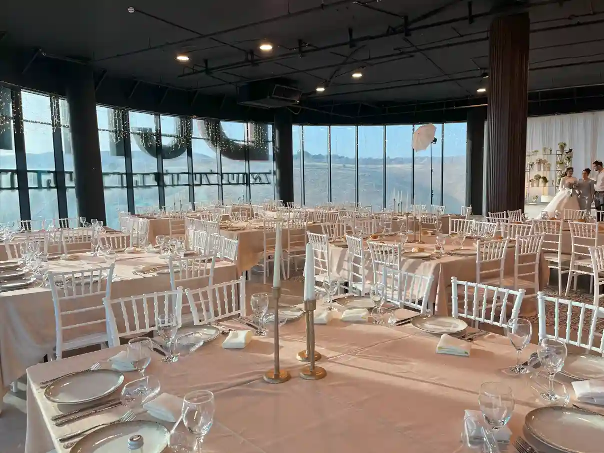 לאולם היפהפה קירות שקופים ונוף פנורמי עוצר נשימה, שמוסיפים לאווירה המיוחדת.