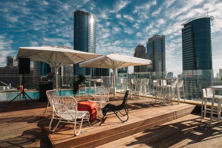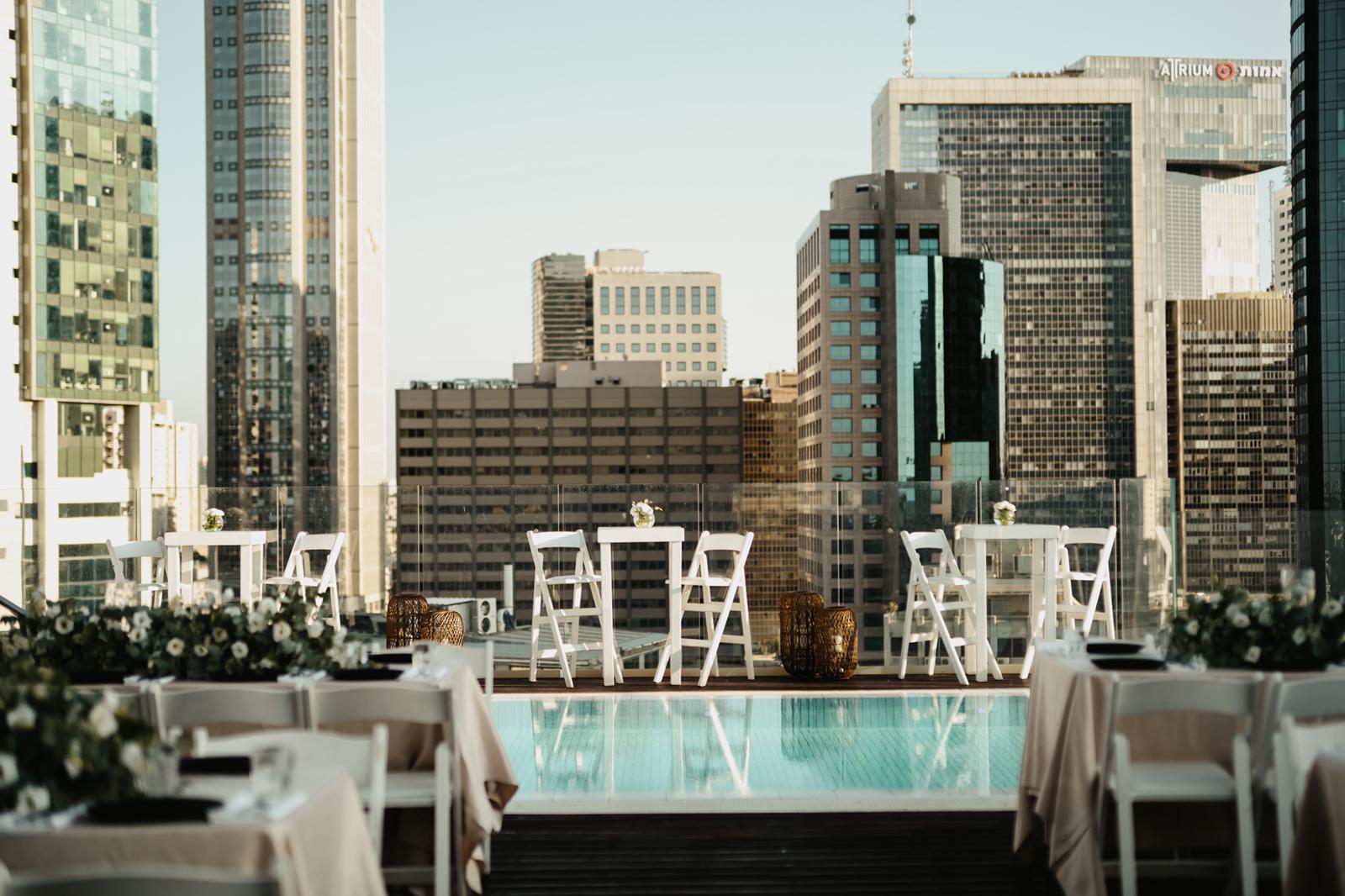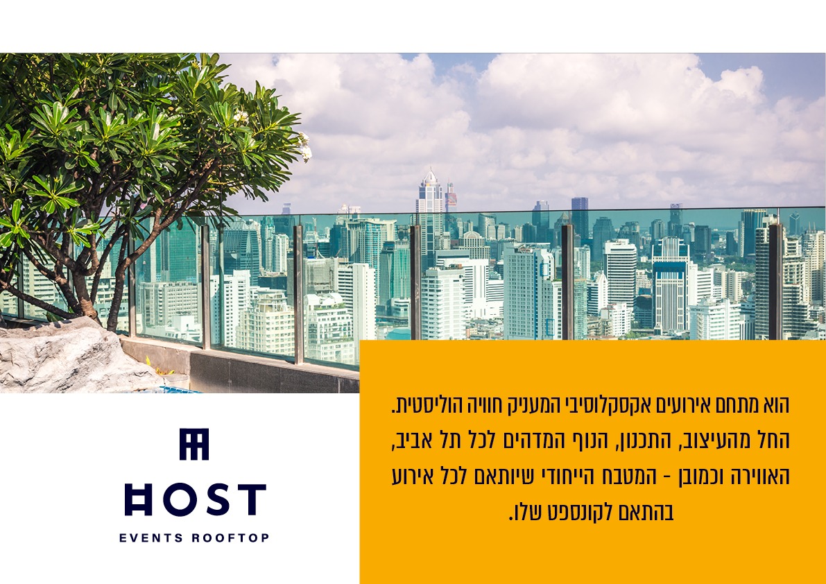 תכירו את HOST- במלון האינדיגו. גג מדהים לאירועים עד 120 מוזמנים באירועי קוקטייל, בריכה יוקרתית ונוף מדהים של בניינים רבי קומות.