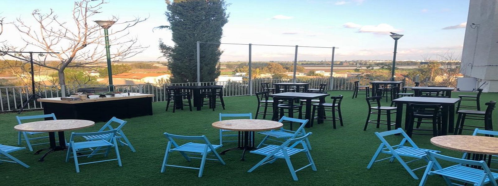 המתחם השני, הוא החיצוני עם הנוף אחד היפים בארץ על מדשאה סינטטית ומעוצבת.