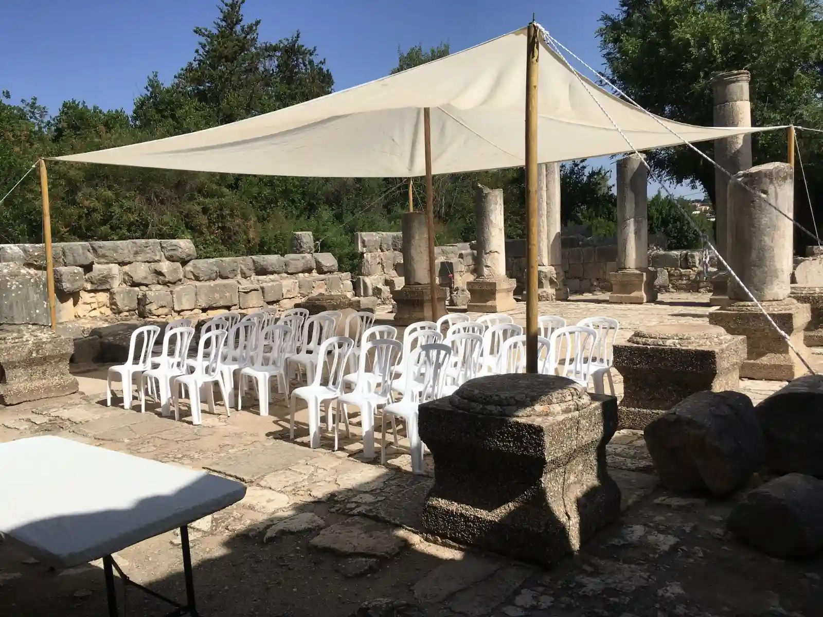 בגן תמצאו מבנה מפואר של בית כנסת מימי התלמוד, שהשתמר בצורה יפהפייה, המהווה תפאורה מושלמת לכל טקס.