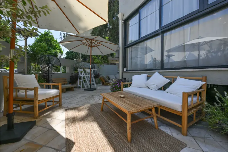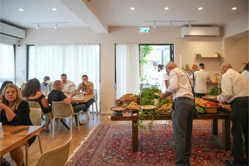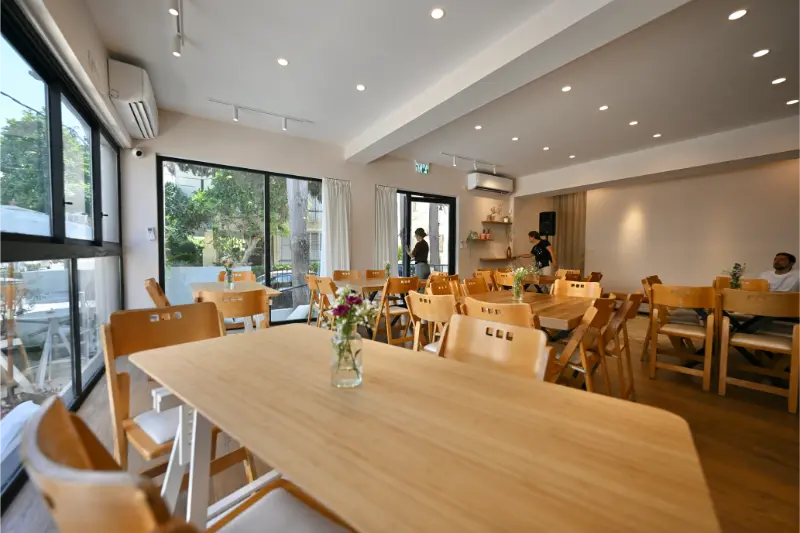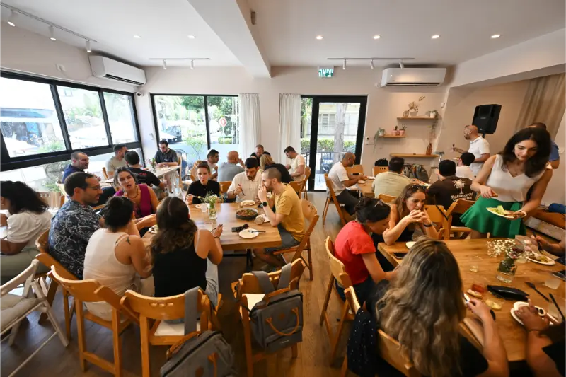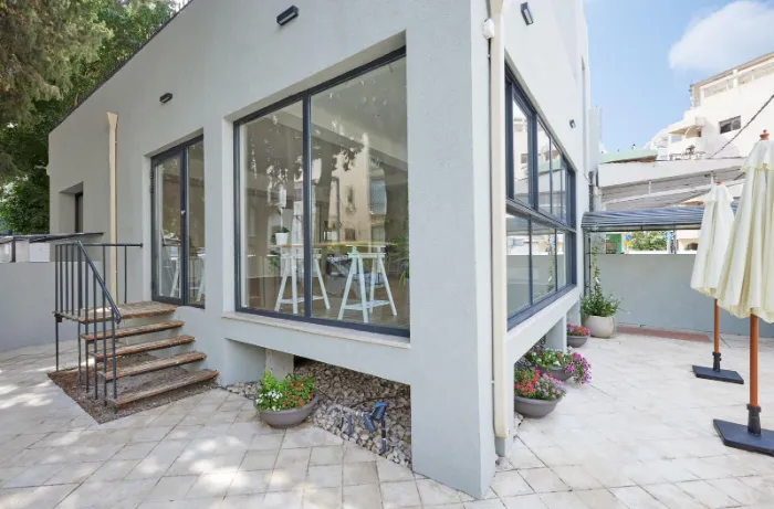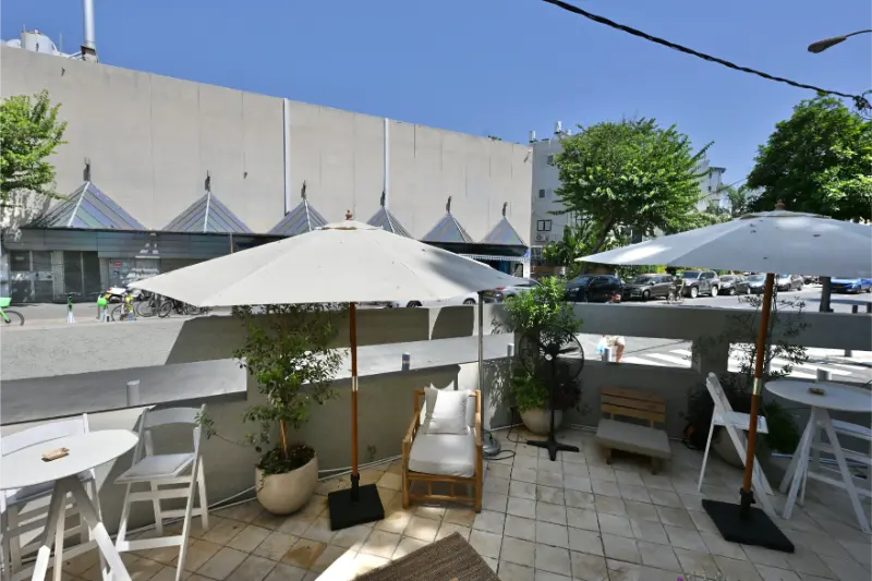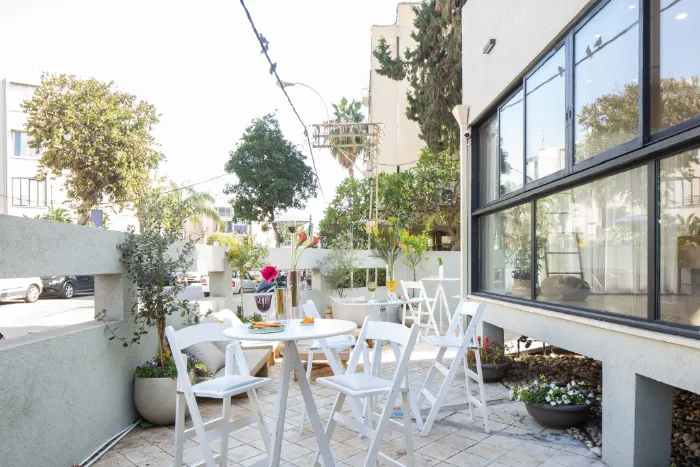 ועד 40 איש בישיבה. החצר המהממת, הגג המפנק לירקון, יוצרים אווירה בייתית ברחוב התל אביבי ירמיהו אשר בצפון הישן.