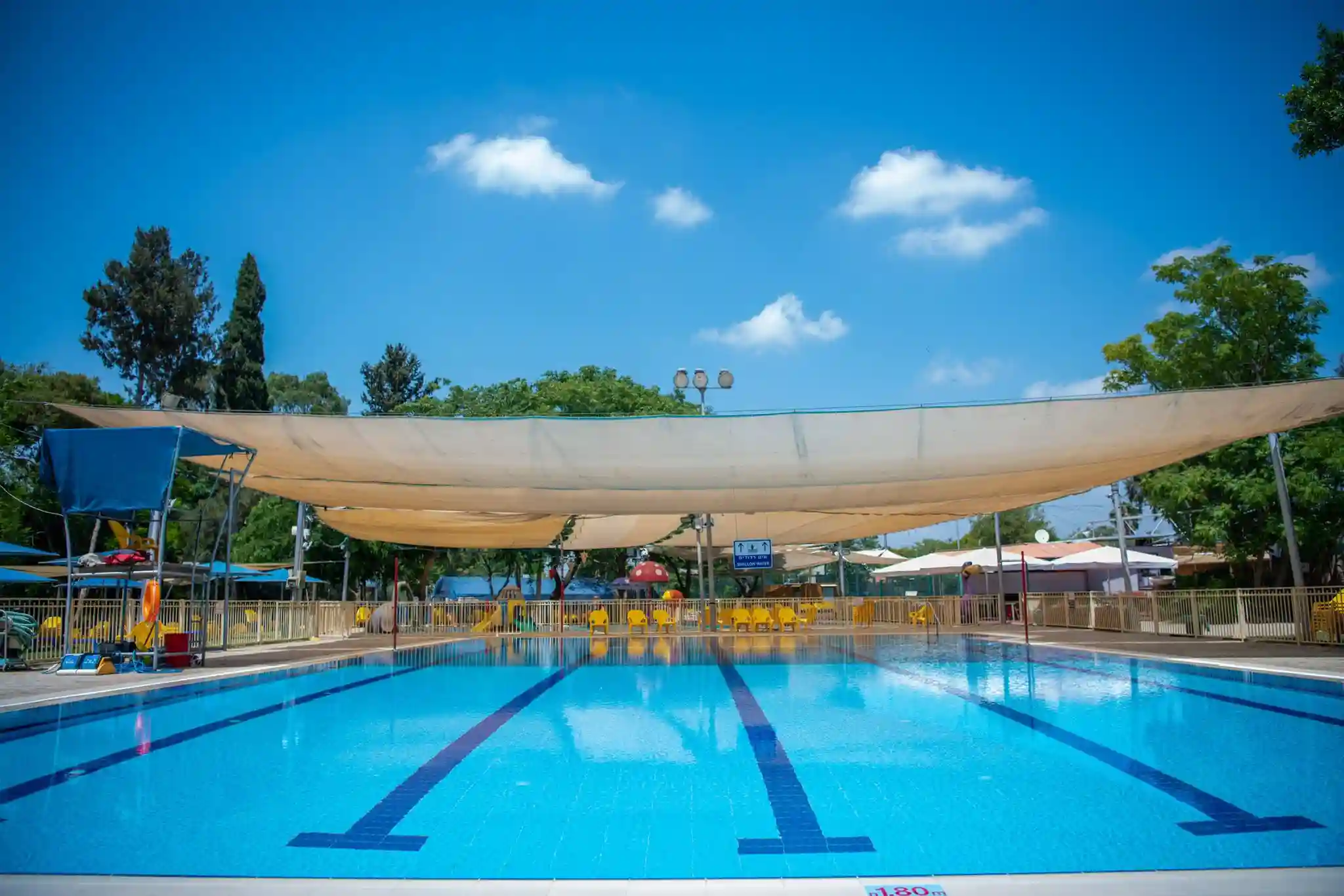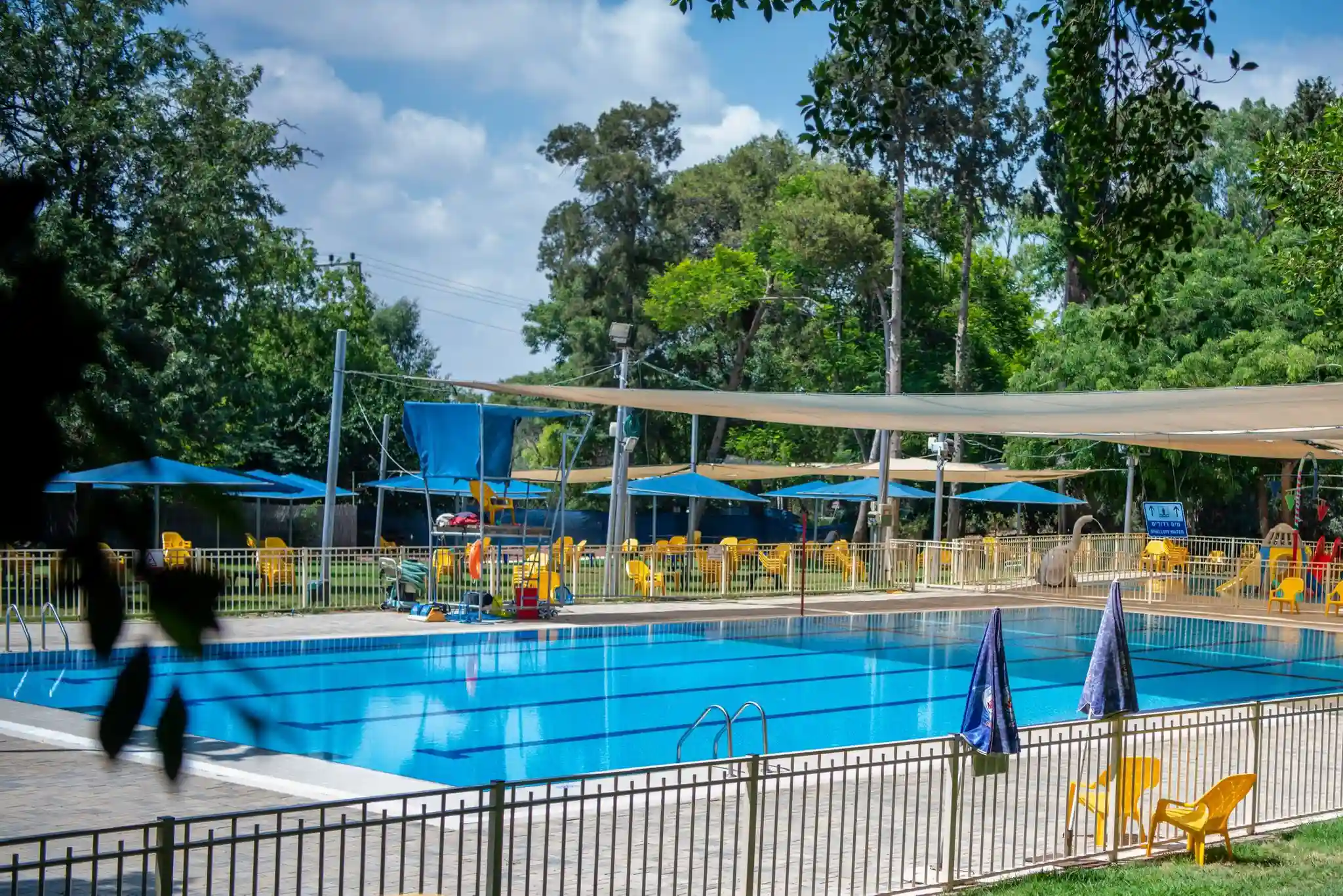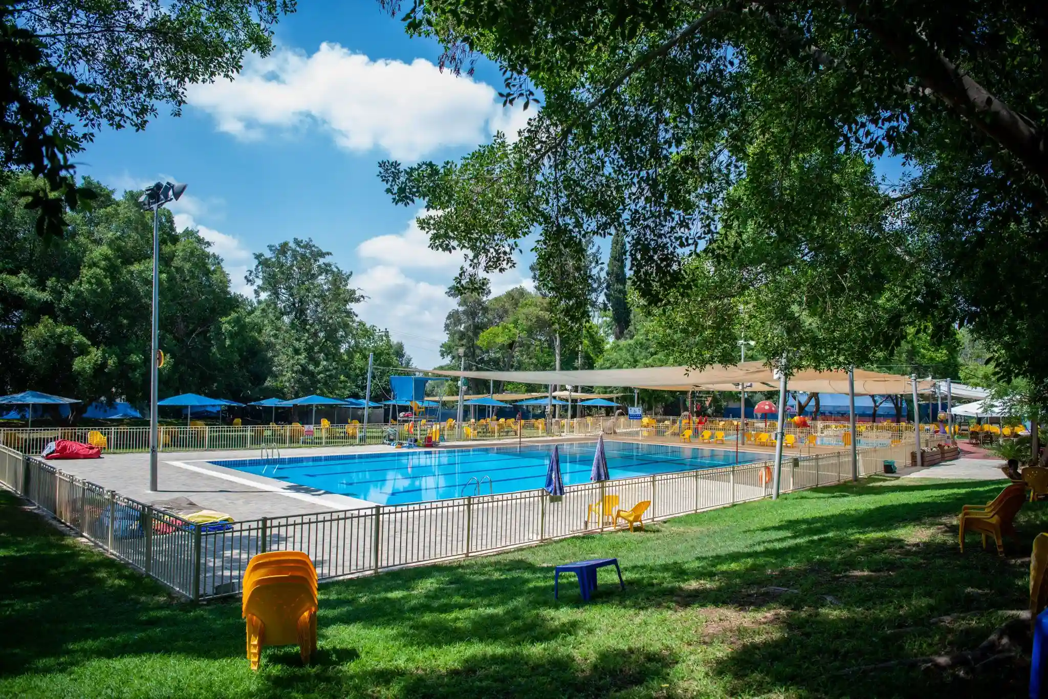 בריכה חצי אולימפית עם מדשאות רחבות ידיים,