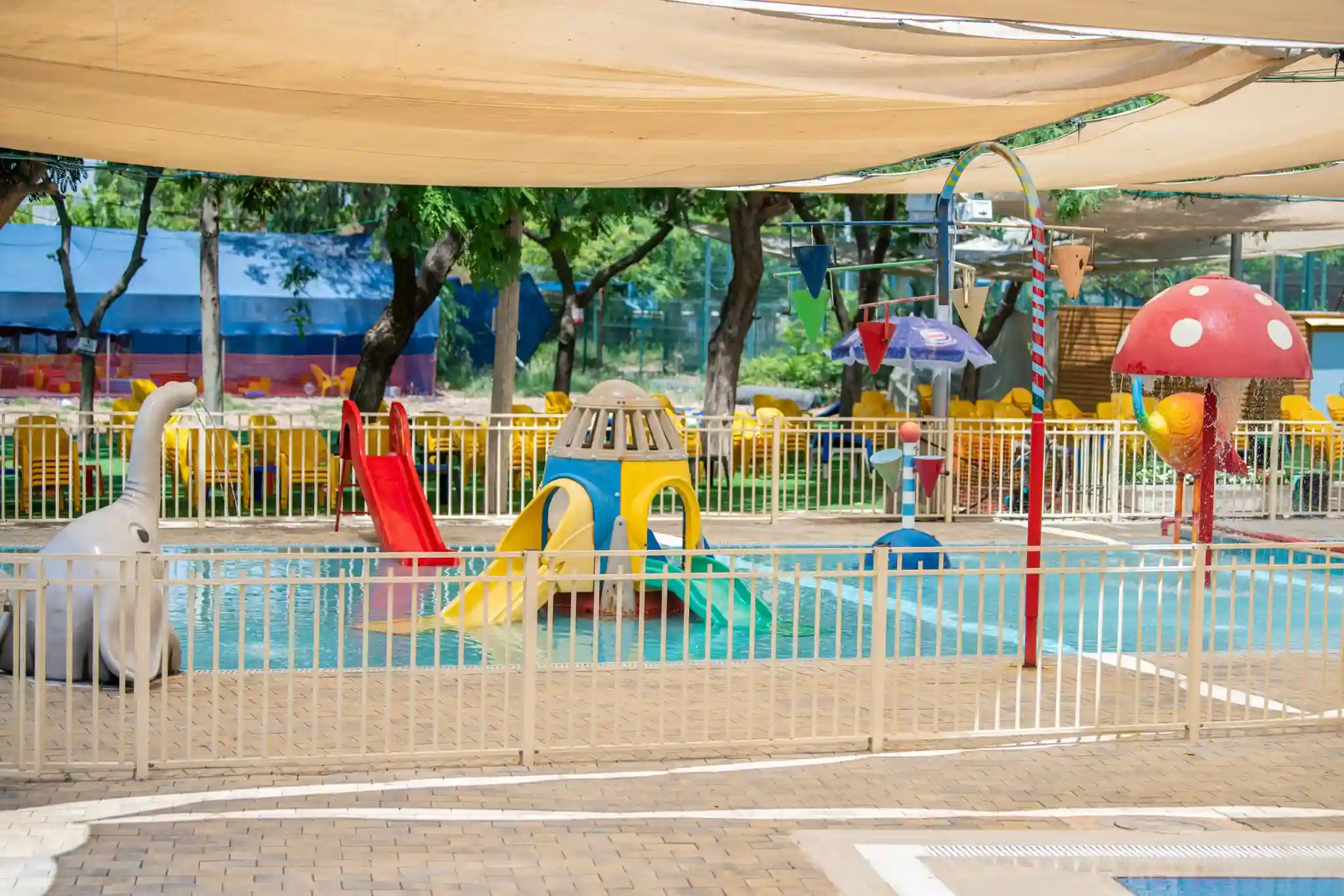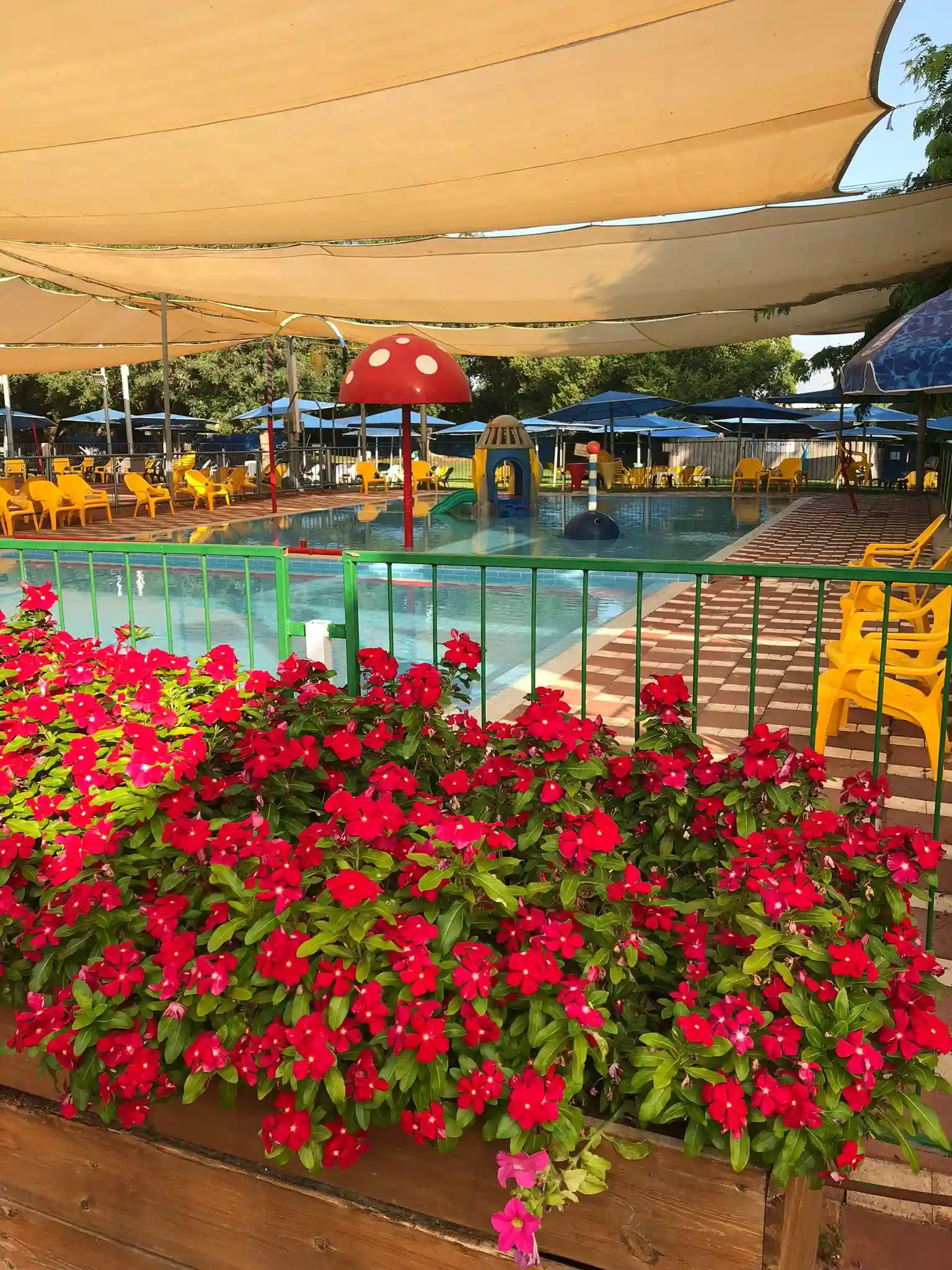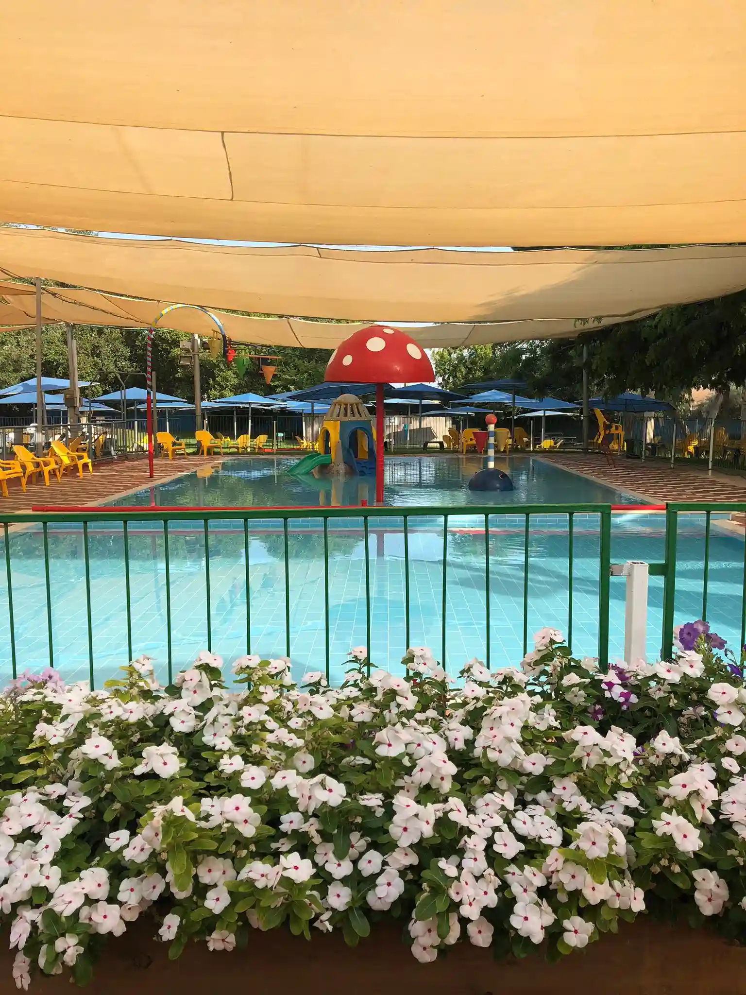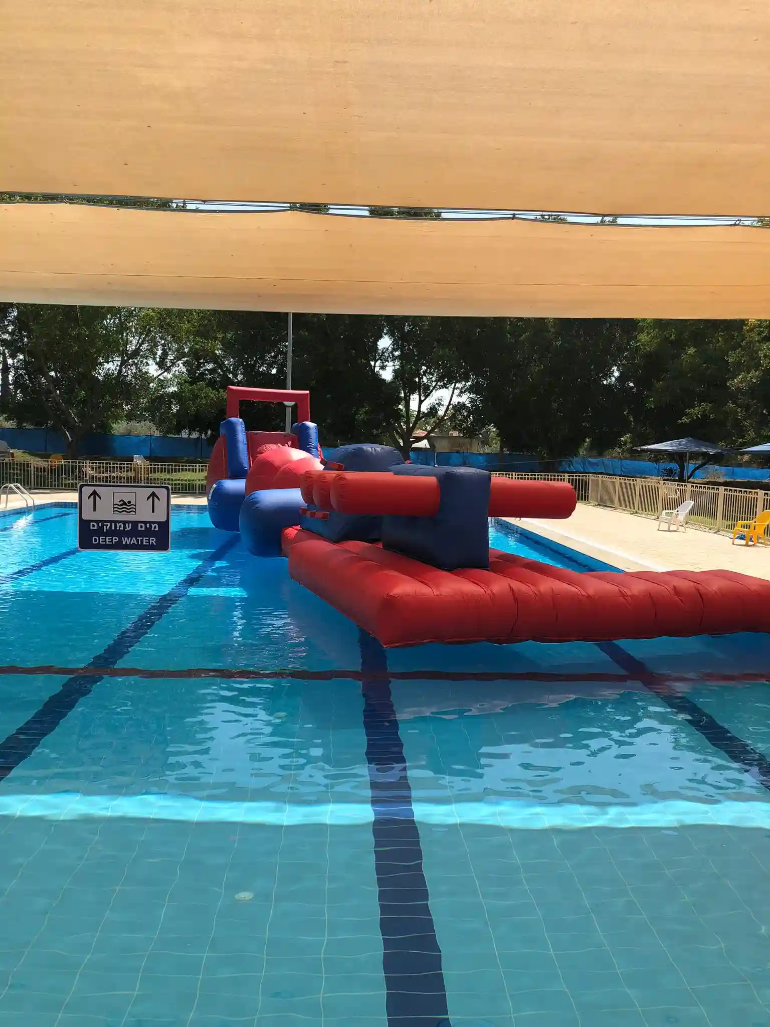 בריכה חצי אולימפית עם מדשאות רחבות ידיים,