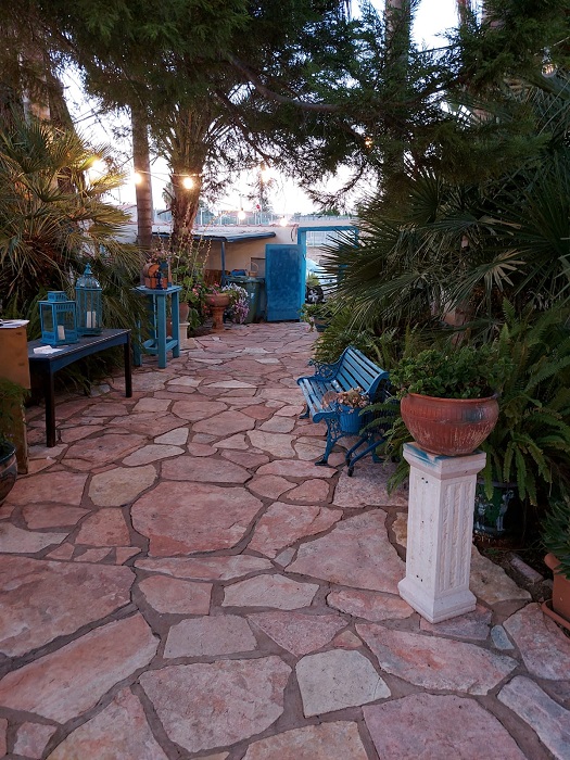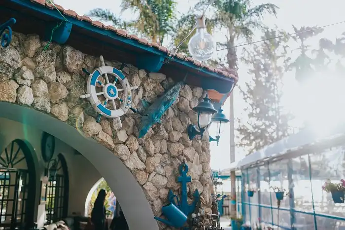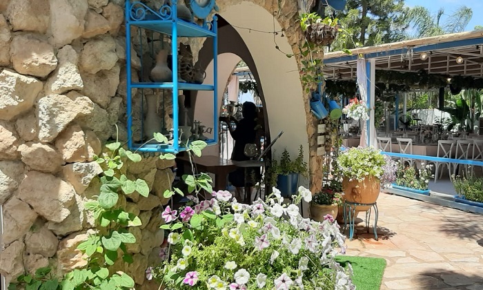 איך שהגעתם למתחם, נכנסתם לאווירה יוונית מדהימה, בית אבן מושלם, גינה ירוקה, הכול בצבעי הכחול לבן המאפיינים את האווירה הים התיכונית