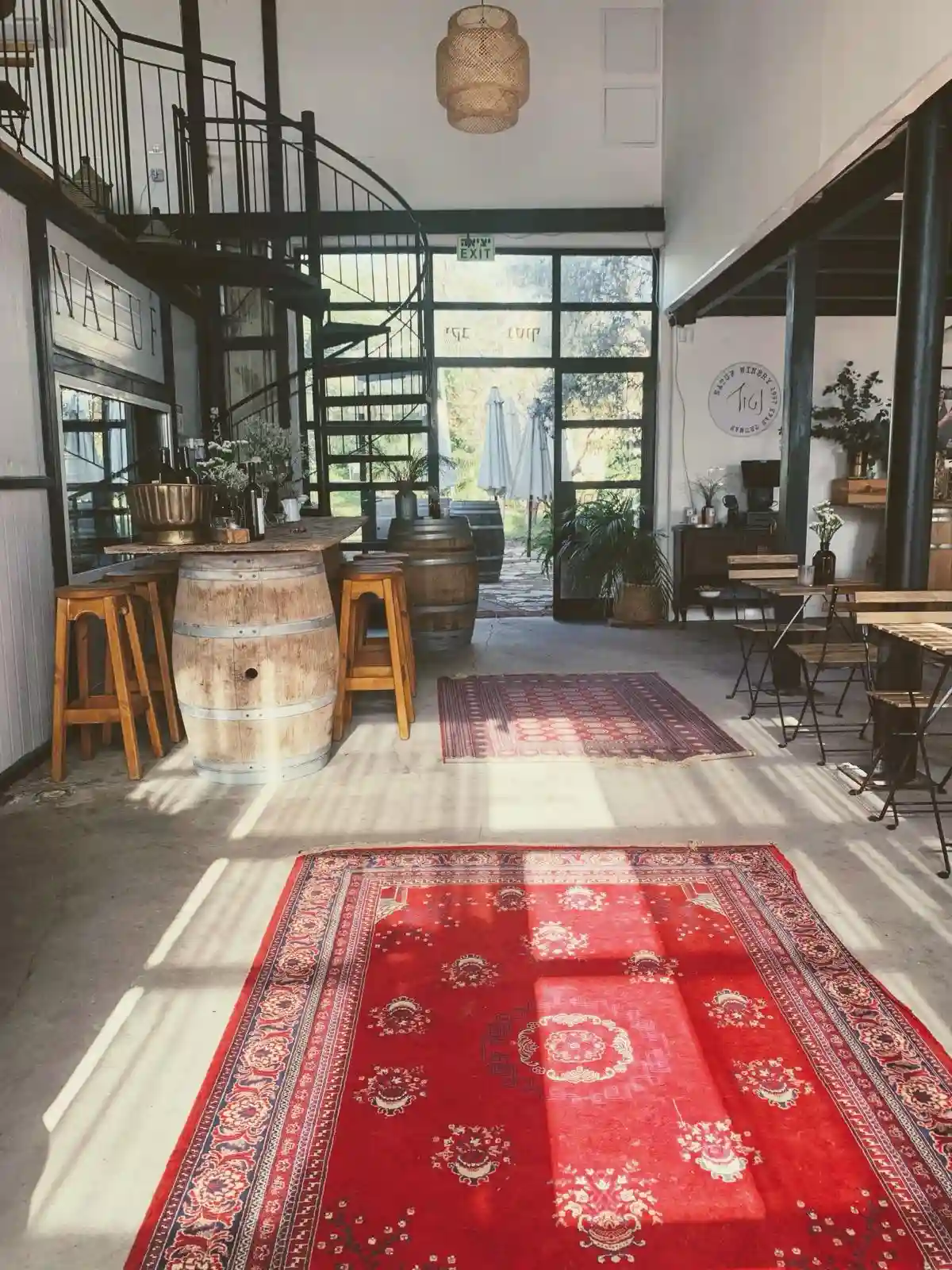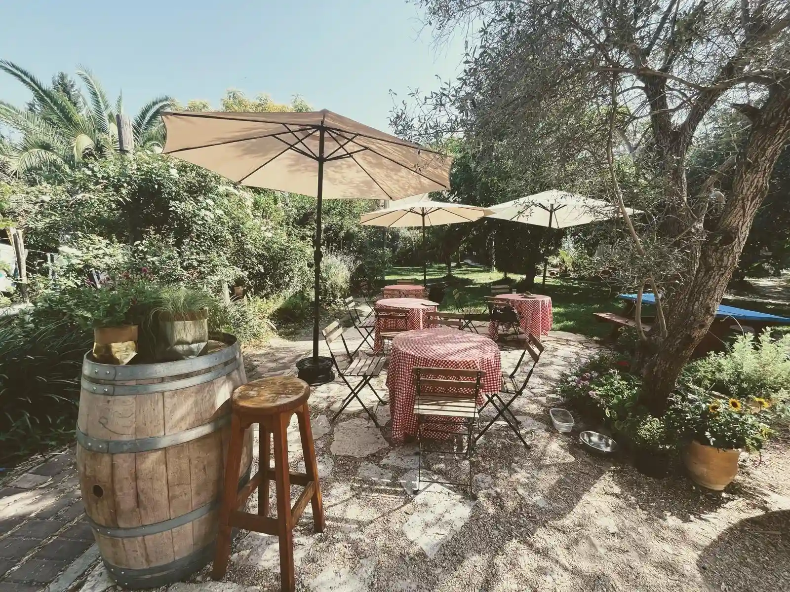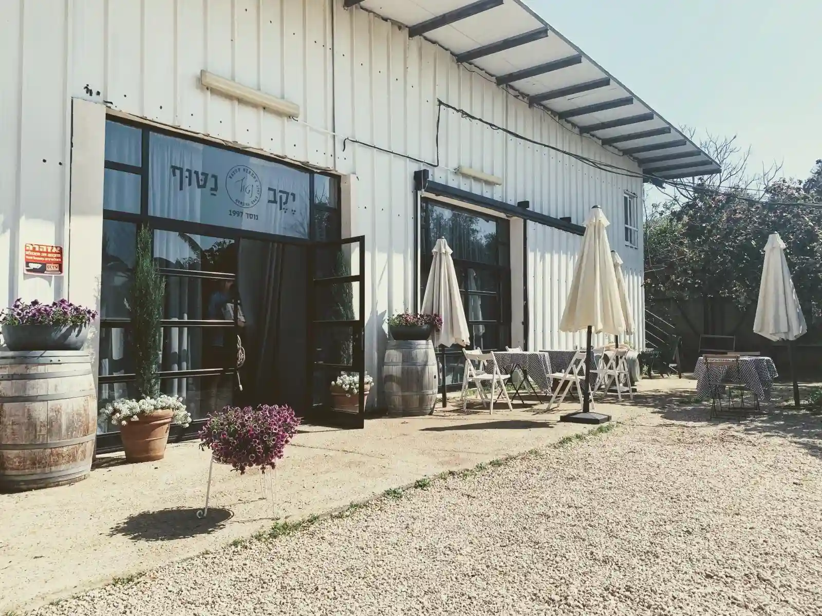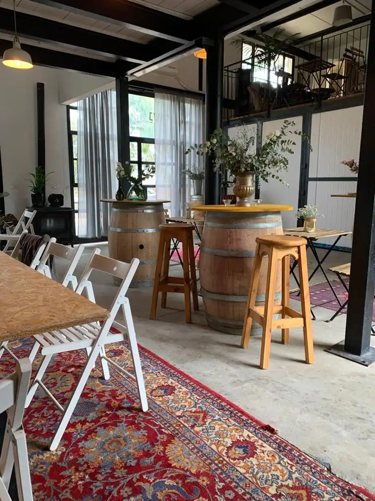 אווירה טבעית וחביות יין לאווירה של היין והכיף.