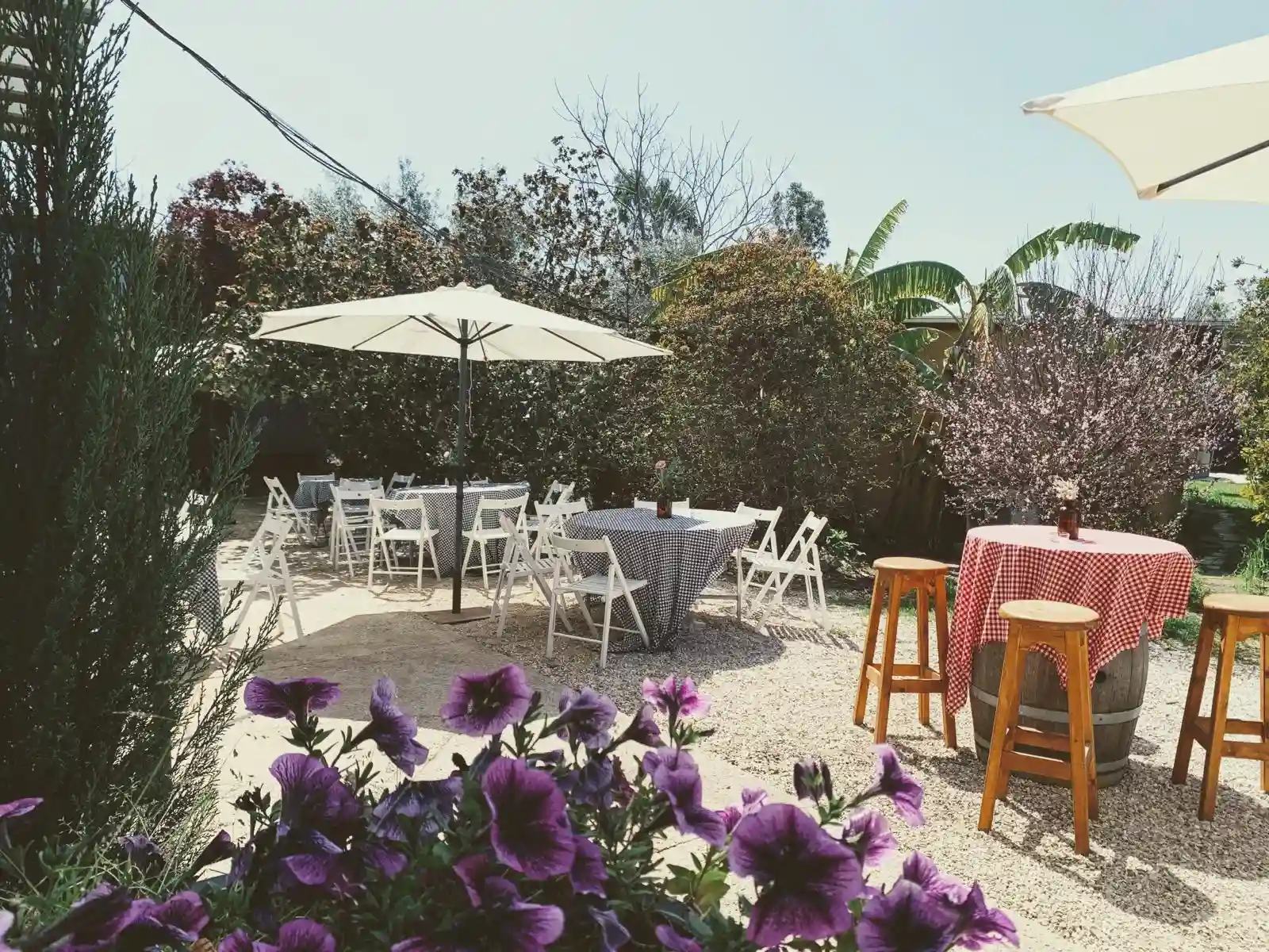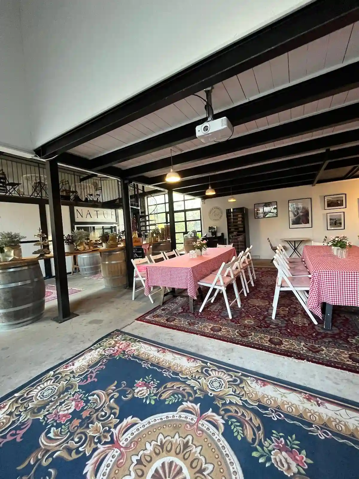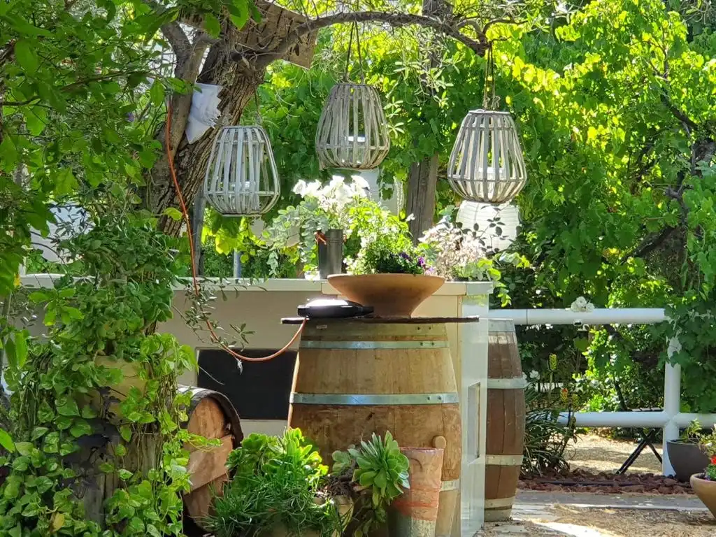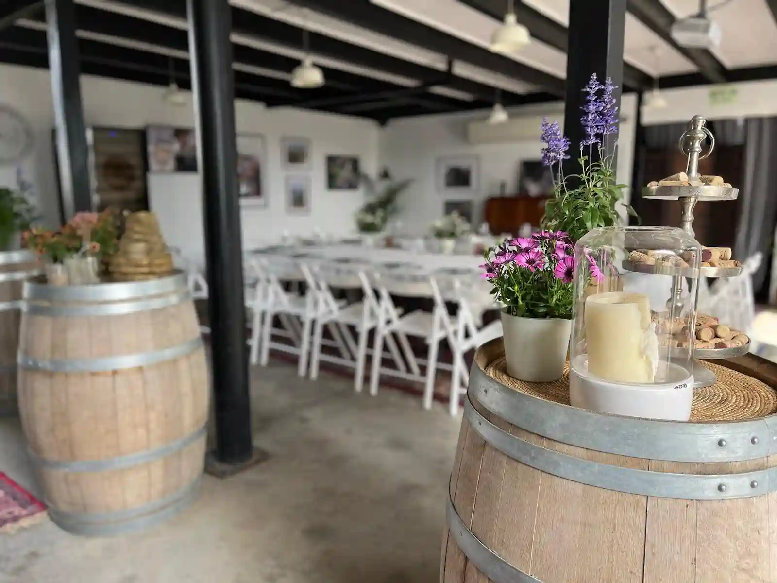 אווירה טבעית וחביות יין לאווירה של היין והכיף.