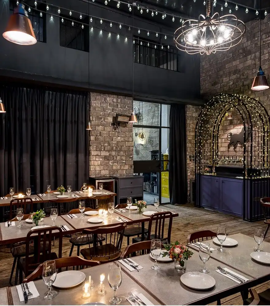 מקום המשלב עיצוב מודרני, תעשייתי לאירועים קטנים.