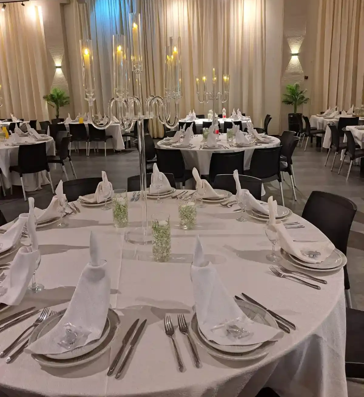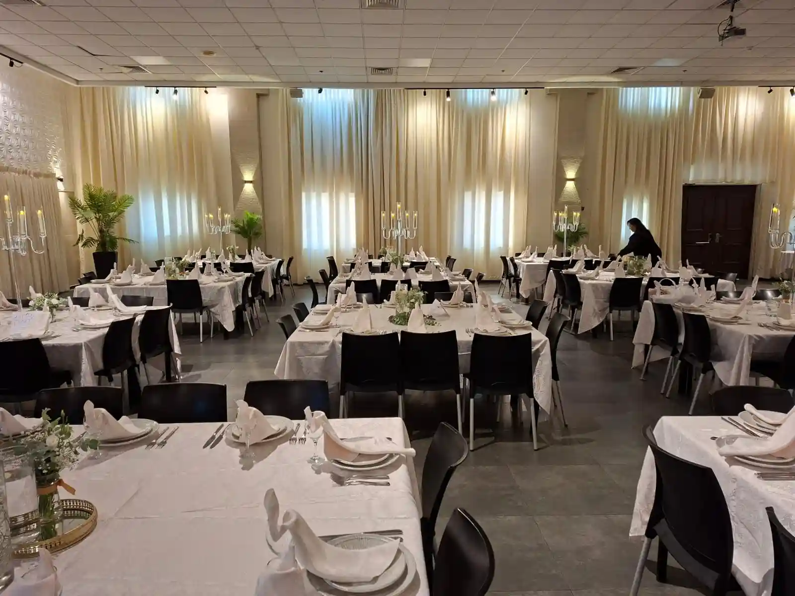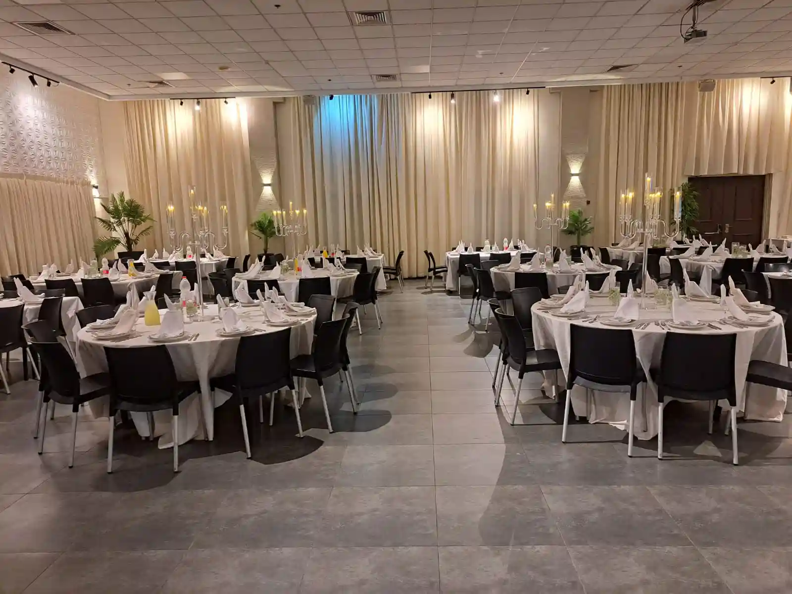 שירותי אירועים מלאים: אנו מציעים תפריט בכשרות מהודרת, המוגש לשולחנות על ידי מלצרים מקצועיים. לרשותכם גם בית כנסת לתפילות.