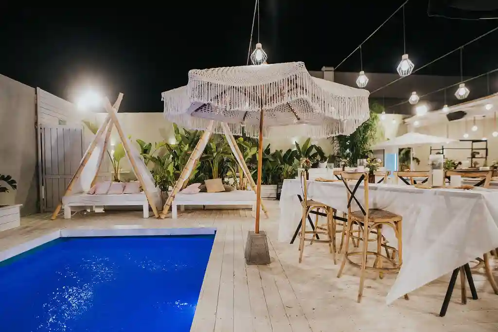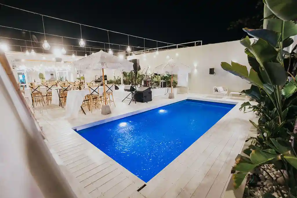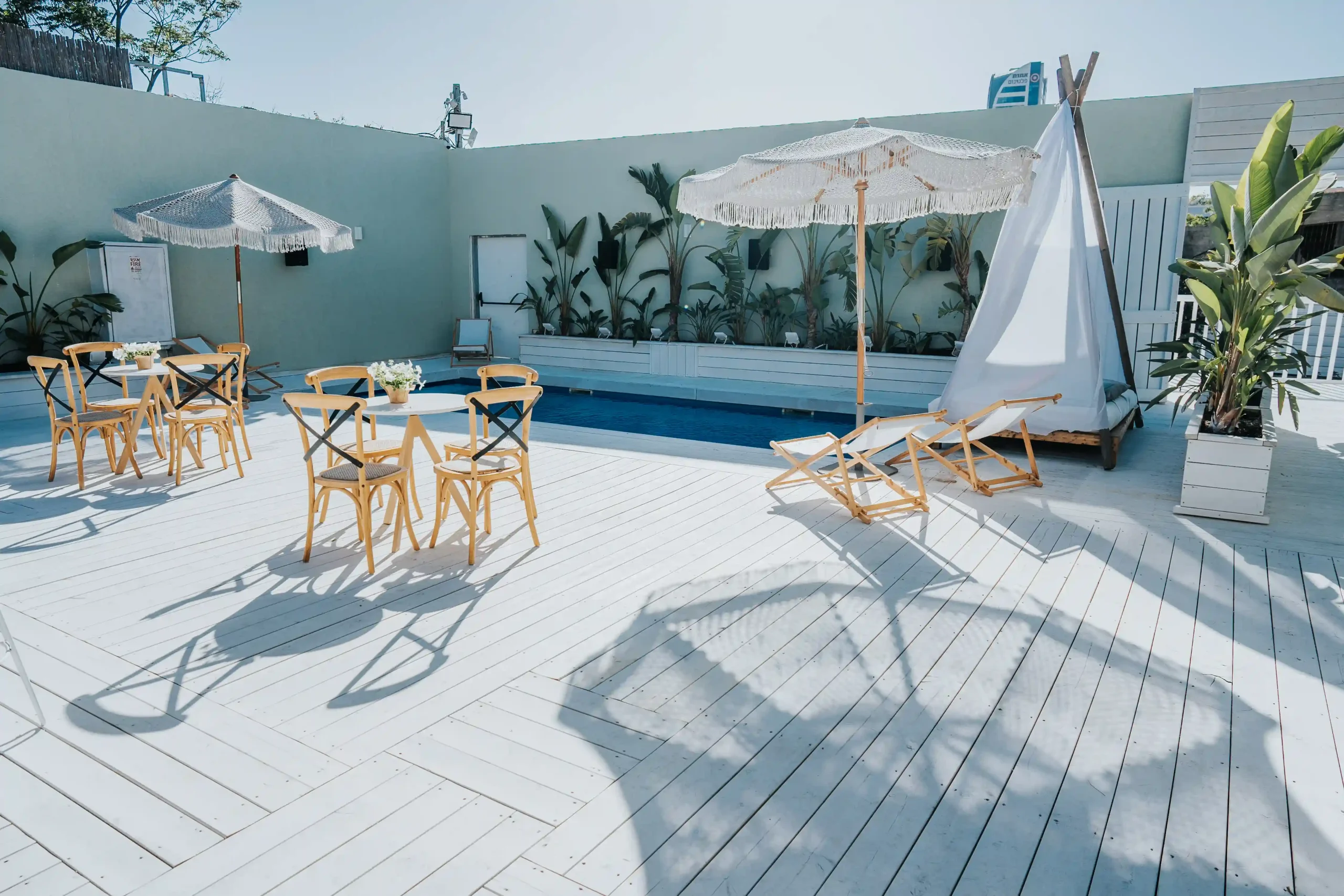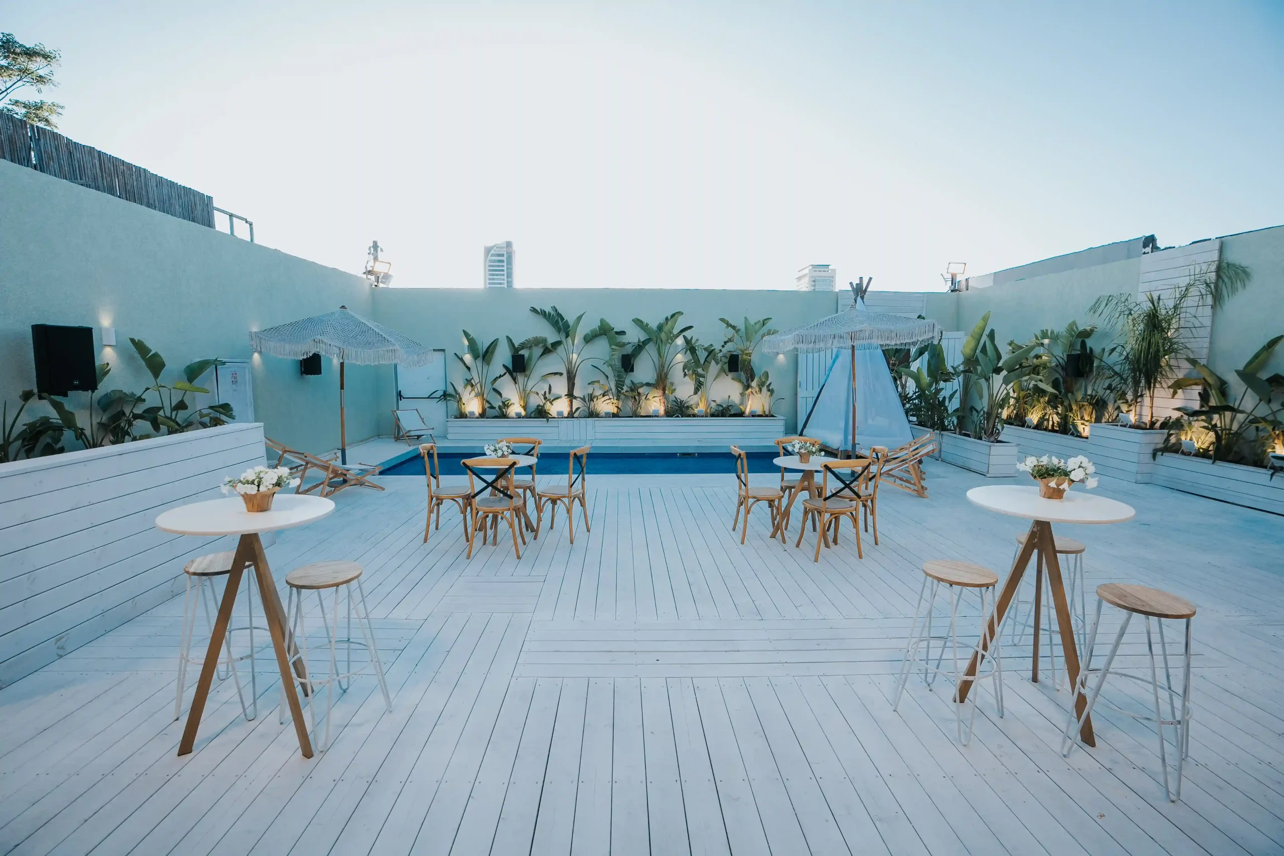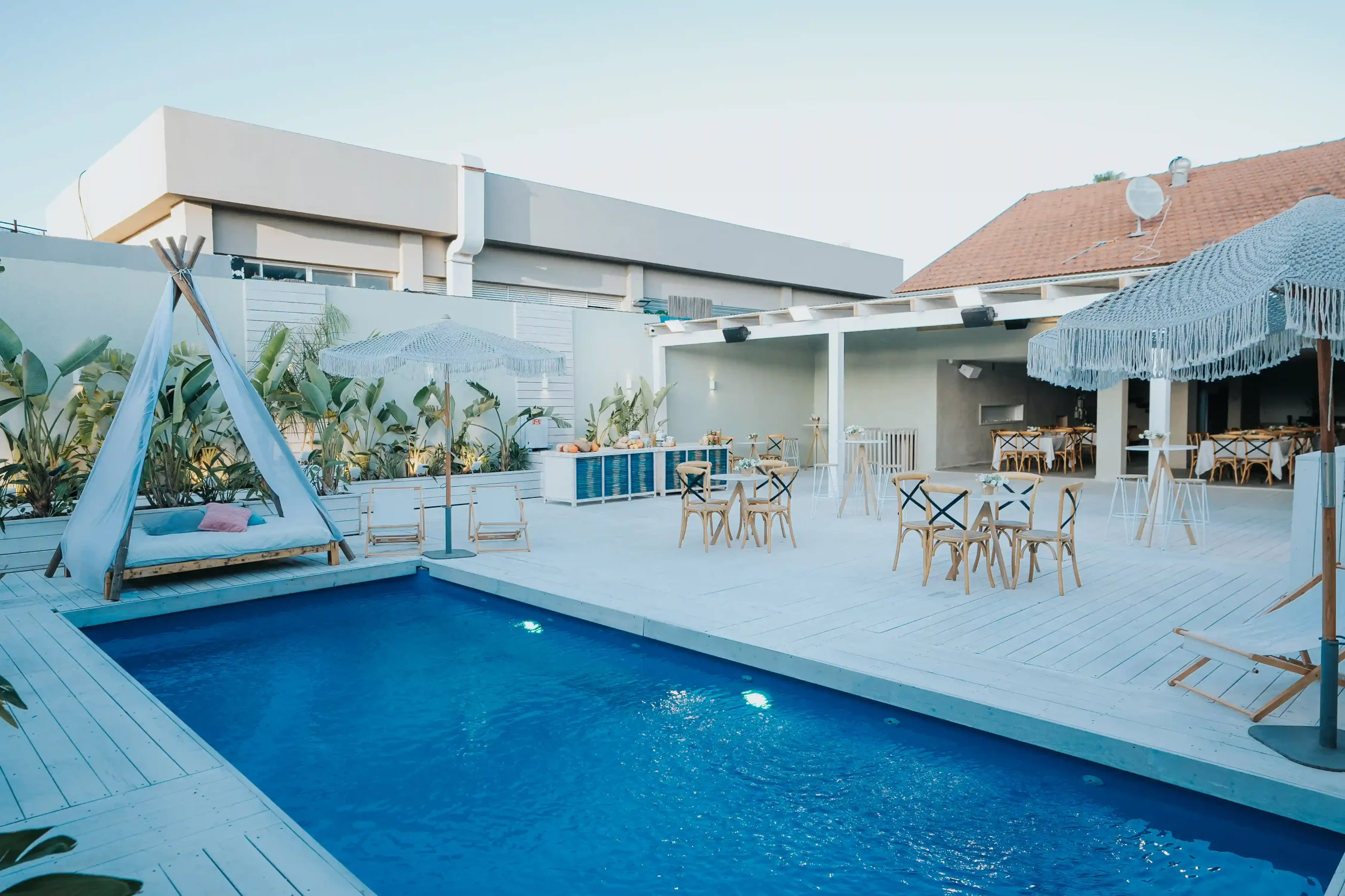 הבריכה המפנקת, יחד עם החללים המעוצבים, יוצרים חווית אירוע בלתי נשכחת שמרגישה כמו חופשה פרטית באי אקזוטי.