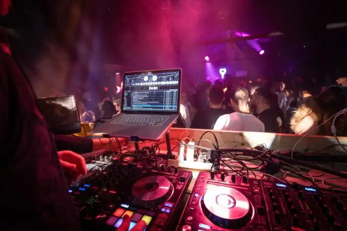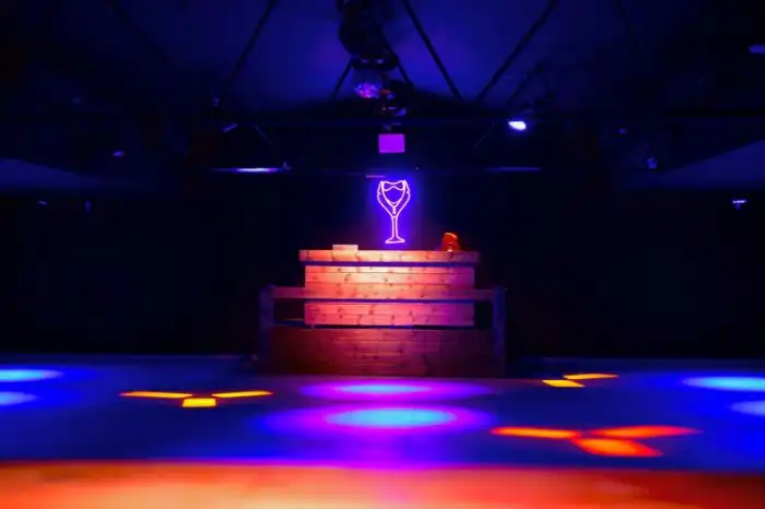 עם תאורה מסיבתית, מבנה ברים, עמדת תקליטן