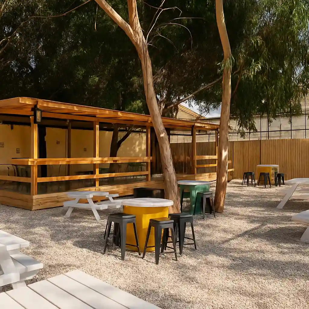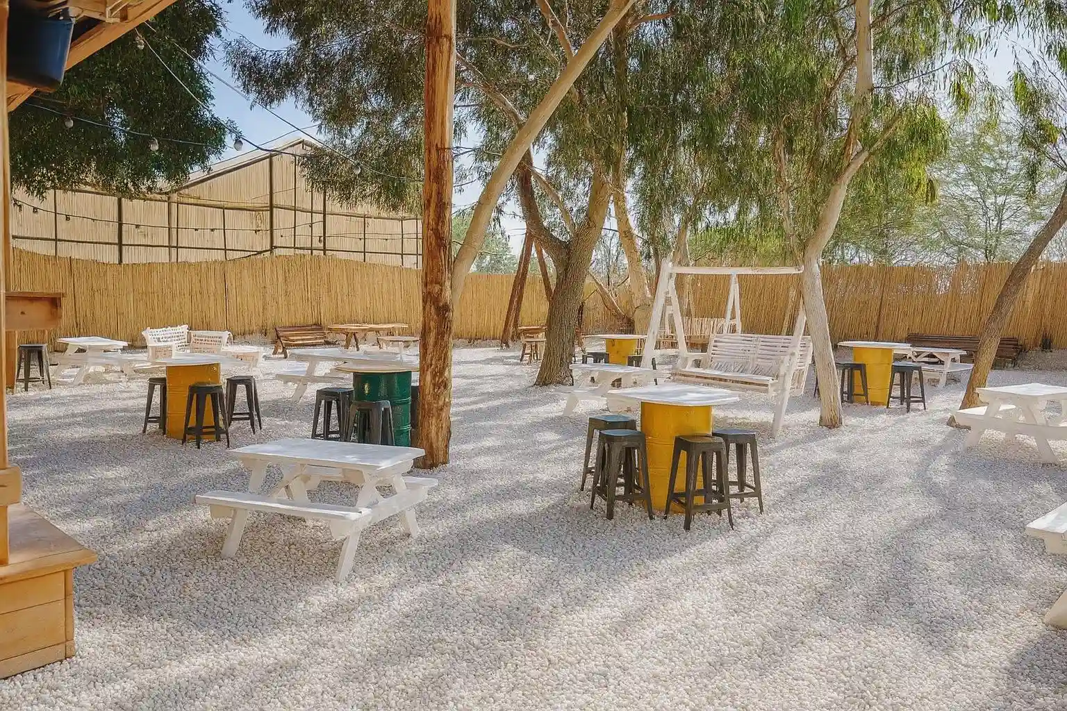 העיצוב הפשוט והחמים, השולחנות הלבנים, החצץ הבהיר ופינות הישיבה המגוונות יוצרים סצנה כפרית-עכשווית שקשה שלא להתאהב בה. בין עצים גבוהים, ערסלים נדנדים ומחצלות שמזמינות לרבוץ – כל מפגש הופך לחגיגה נינוחה ובלתי נשכחת.