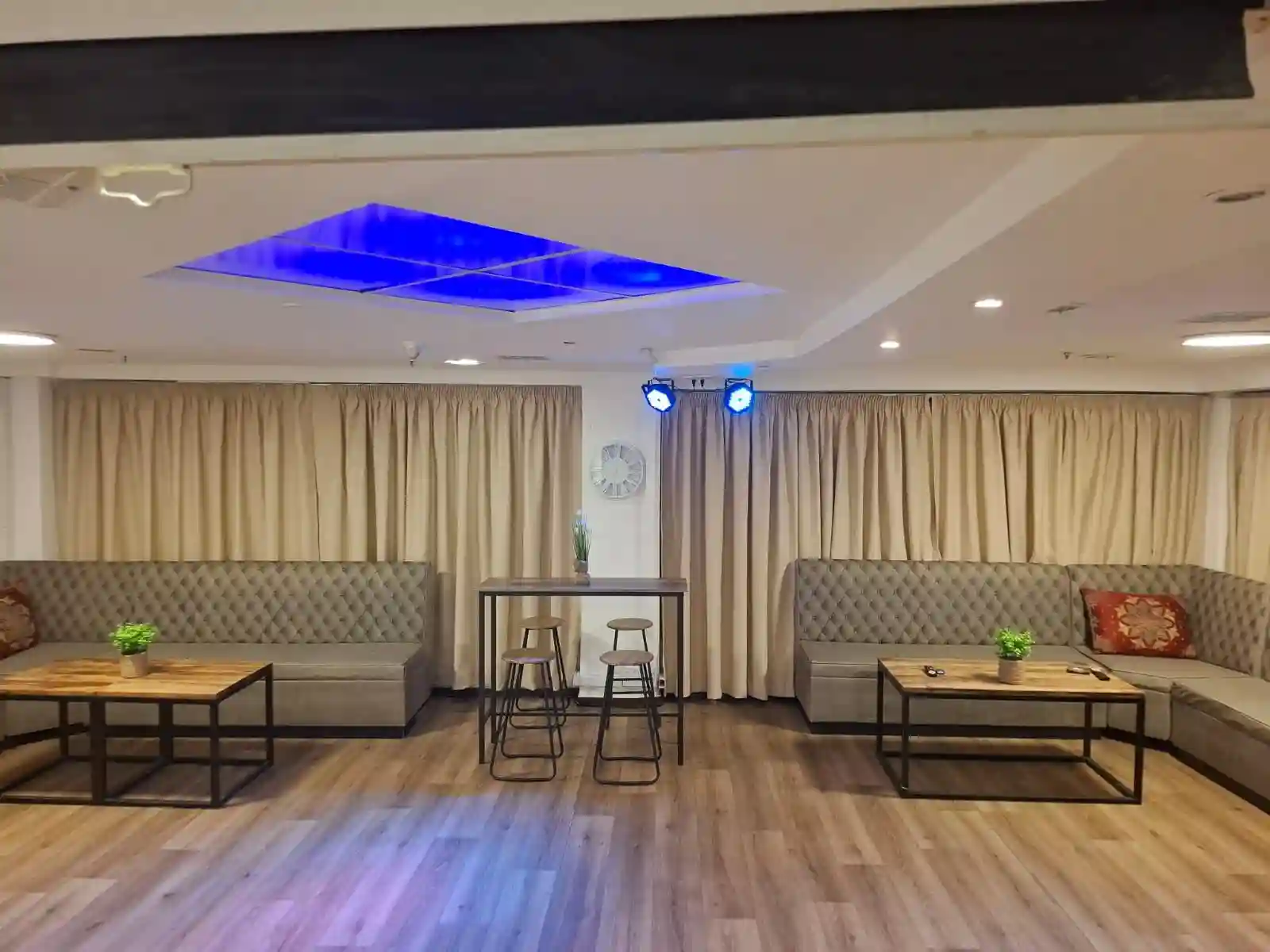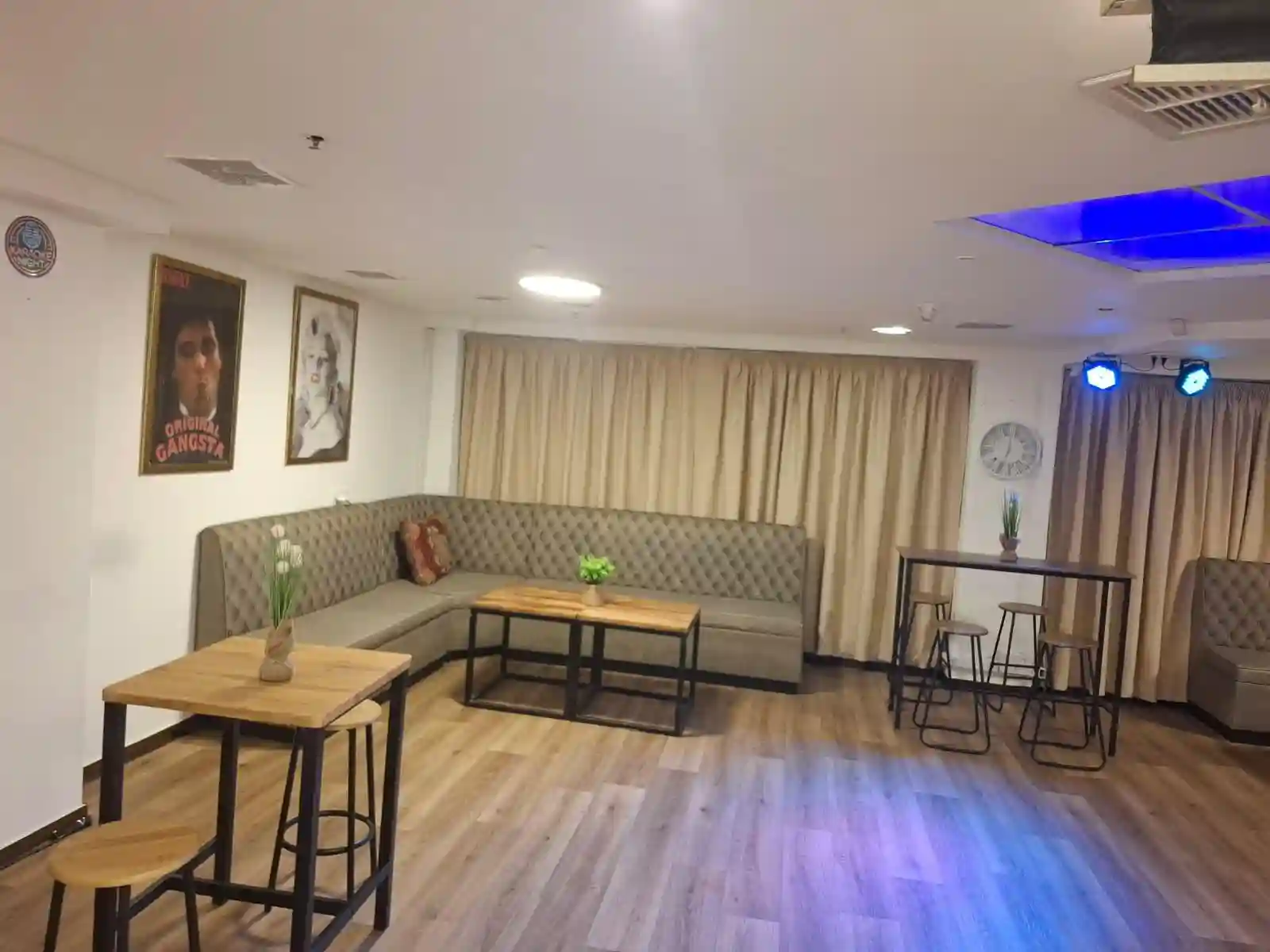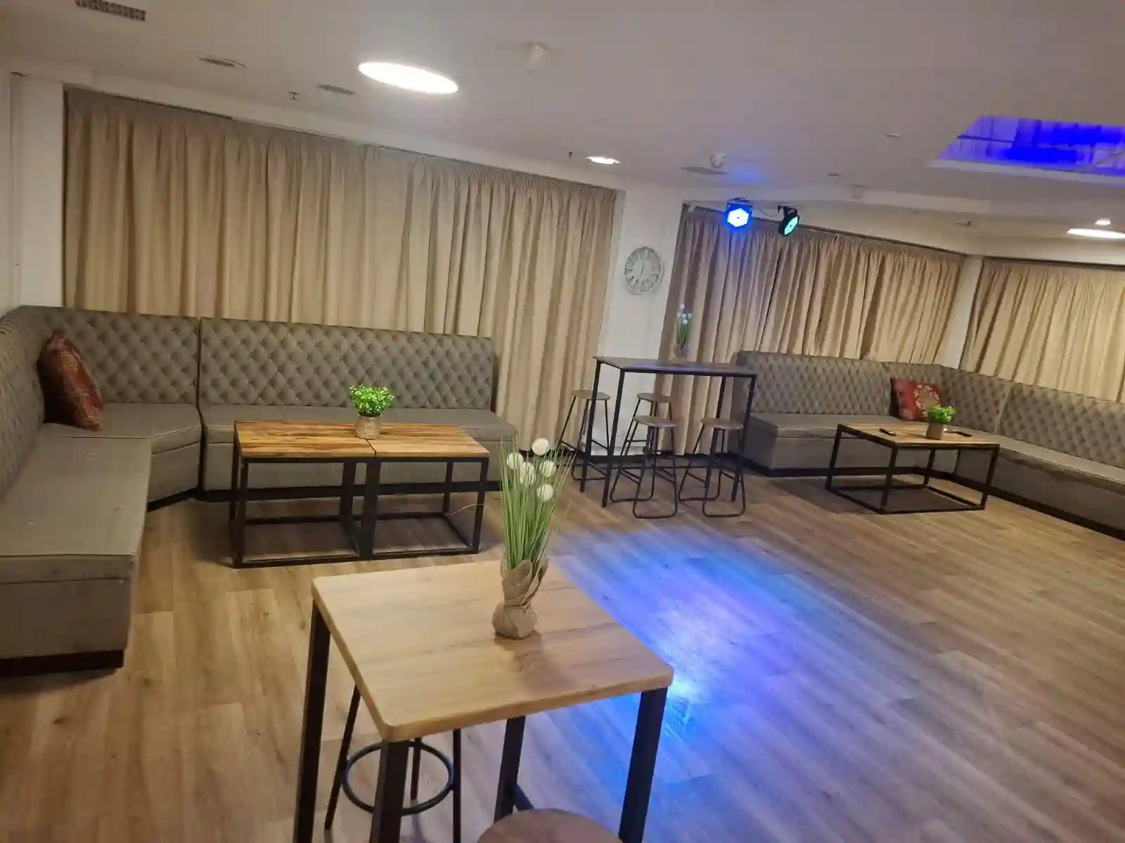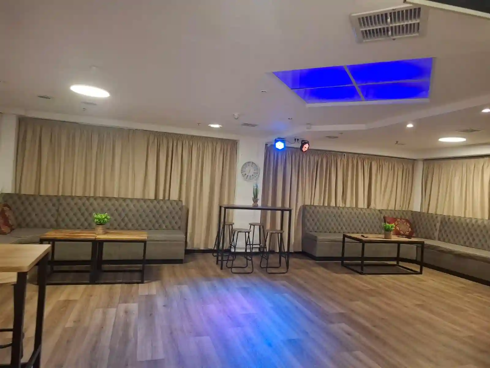 החלל שלנו גדול, מרווח ומעוצב בסטייל, עם ספות נוחות שמזמינות אתכם להירגע ולהרגיש בבית. מערכת הסאונד המתקדמת והמסכים הגדולים מבטיחים חוויית שירה מקצועית, והתאורה הצבעונית מוסיפה לאווירה הקסומה.