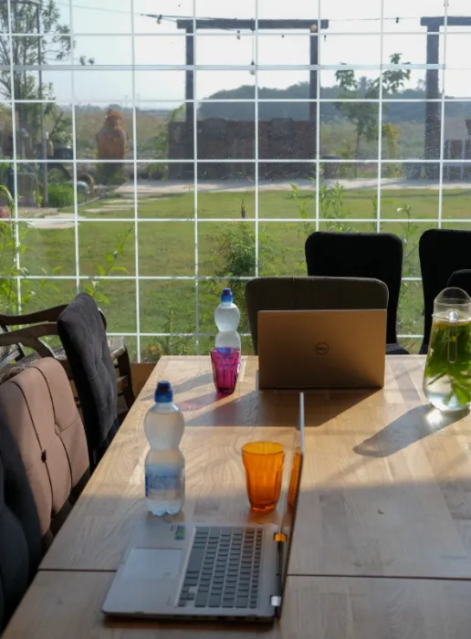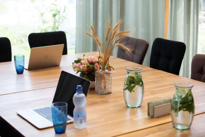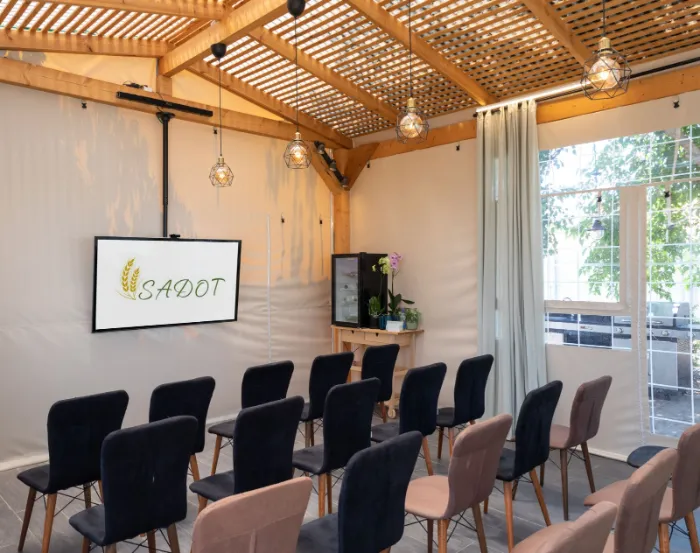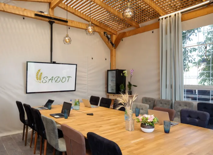 במתחם הפנימי יש מערכת לשיחות ZOOM, מסך, לוח מחיק, פינת קפה, מזגנים, הצללה וכל האמצעים הדרושים לאירוע עסקי וכמו כן התאמת החלל לחדר ישיבות, ישיבת תיאטרון, או ארוחה עסקית.