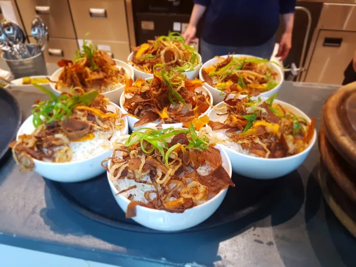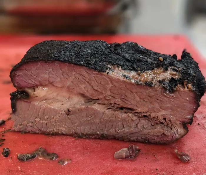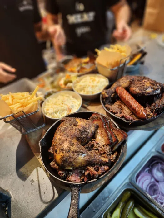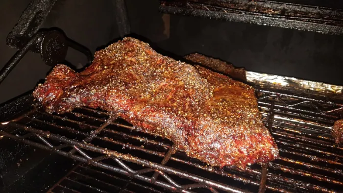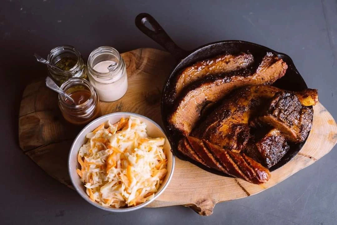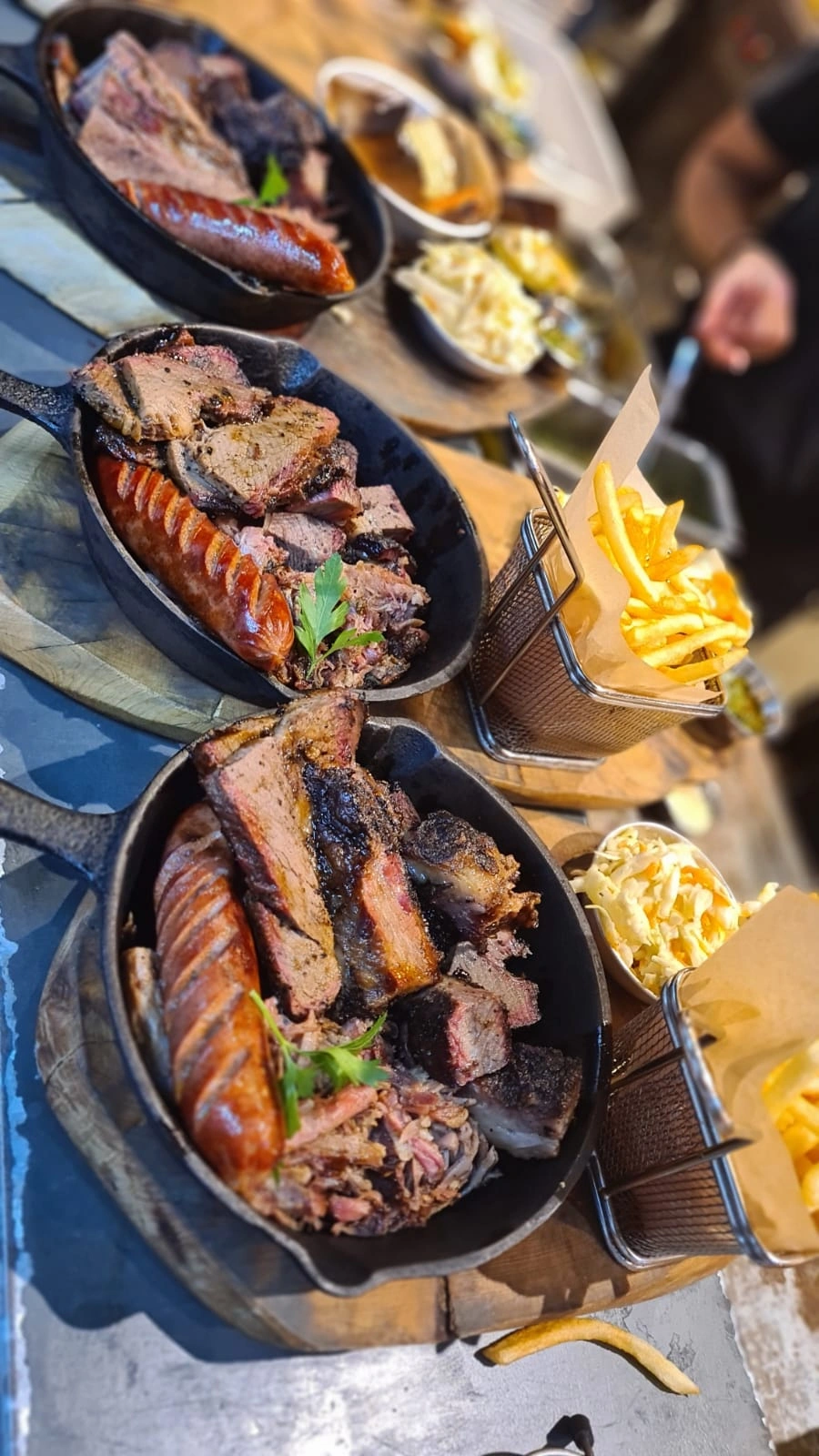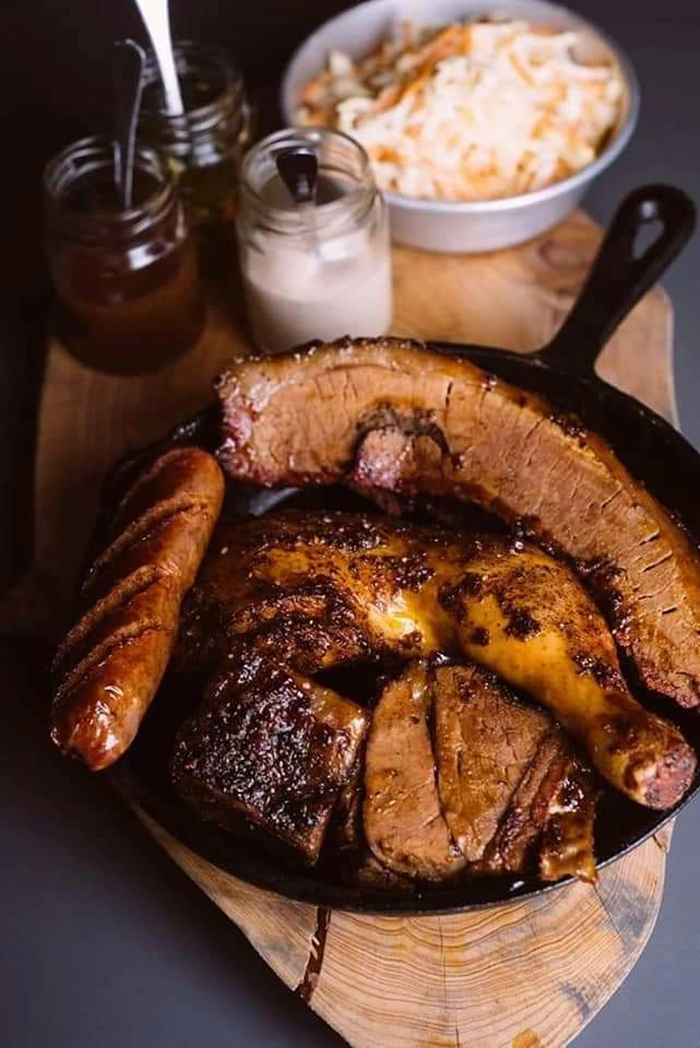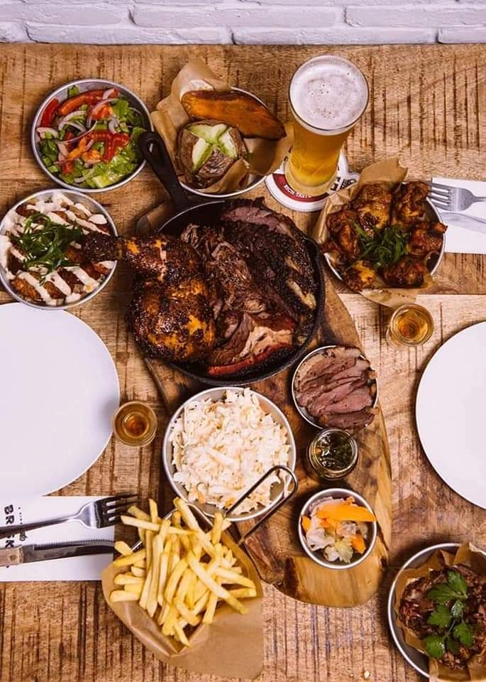 מעשנת נתחי בשר בבישול איטי לאורך זמן בארומה של עצי פקאן, תיבול מיוחד ורטבים ביתיים.