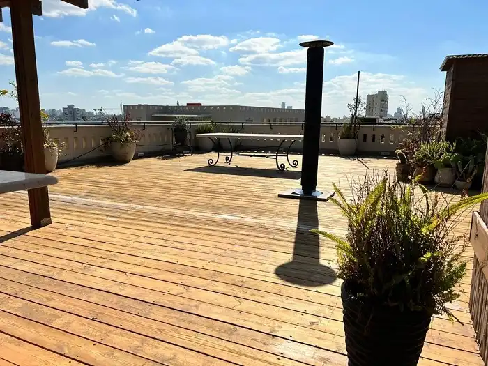 עם מבנה בר מושלם, דק עצום, נוף פסטורלי מושלם גם אל הים התיכון וגם אל גגות יפו העתיקה והמיוחדת.