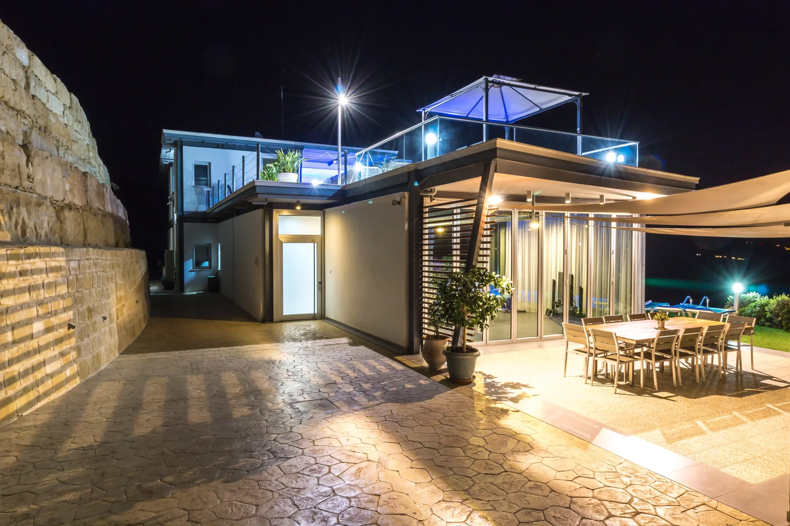 אירוח ולינה: הווילה מציעה 6-8 חדרי שינה ומסוגלת לארח עד 16 אורחים ללינה.