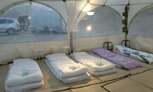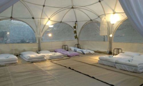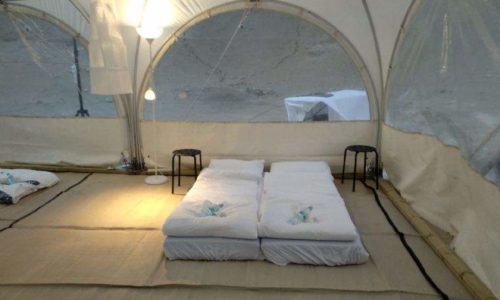 אוהל מפנק לאירועים כולל מזרונים, מצעים ופינות ישיבה