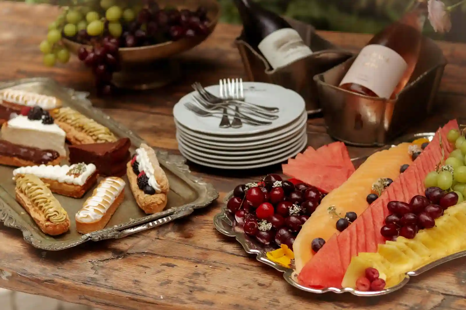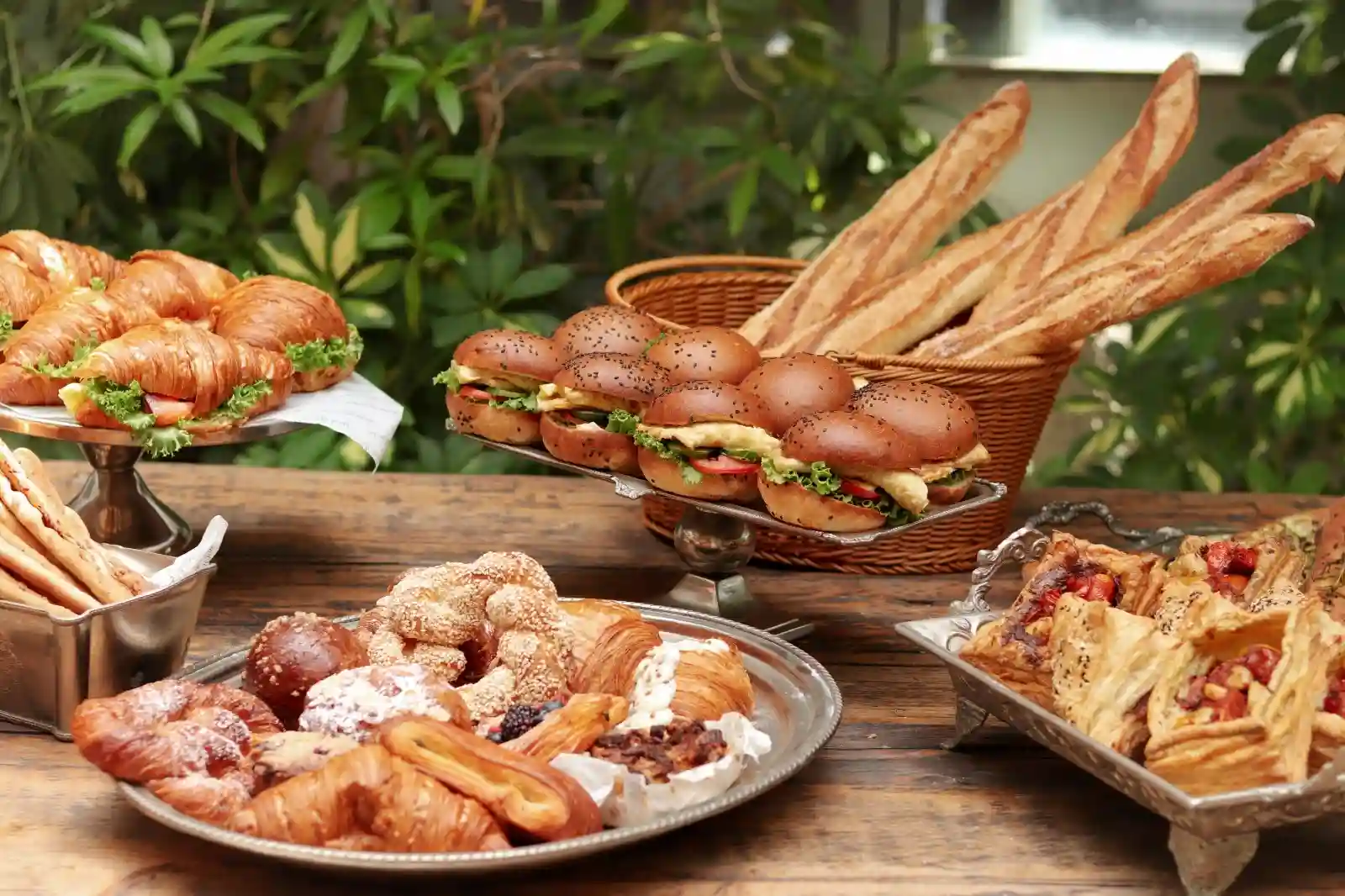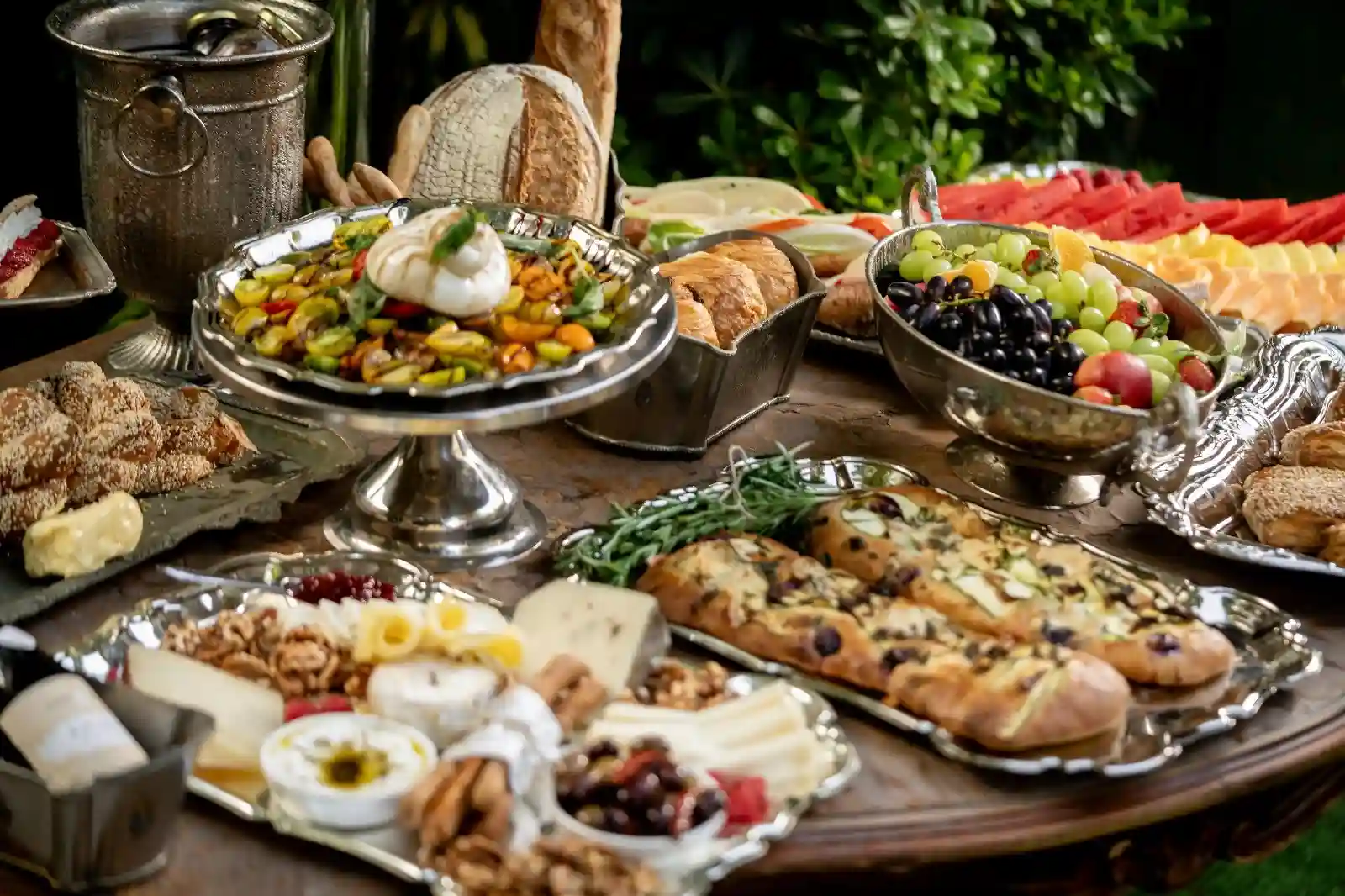 החל ממגשי גבינות עשירות ועד פירות טריים וצבעוניים, מאפים מתוקים ומלוחים, כריכים טריים וסלטים מרעננים – כל מגש מעוצב בטוב טעם ומוכן בקפידה, מה שמבטיח חווית אירוח מושלמת.
