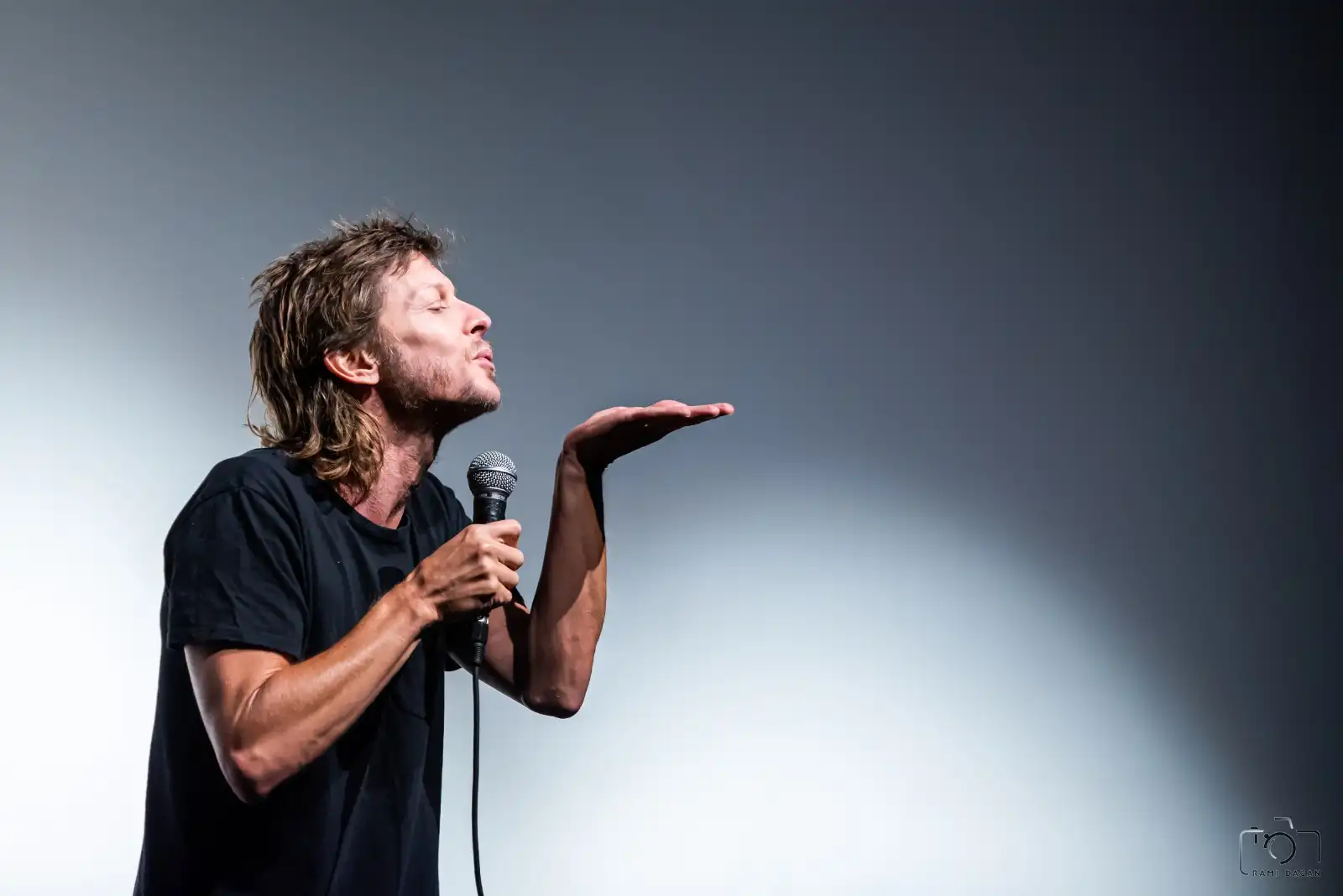 שיודע בקלי קלות לצחוק על עצמו עם שילוב של הקהל, יודע להרים, לשאול את השאלות שלא כולם שואלים ויודע פשוט לעשות שמח