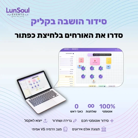 סידורי הושבה חכמים: ממשק "גרירה" פשוט ומהיר שחוסך שעות של עבודה.