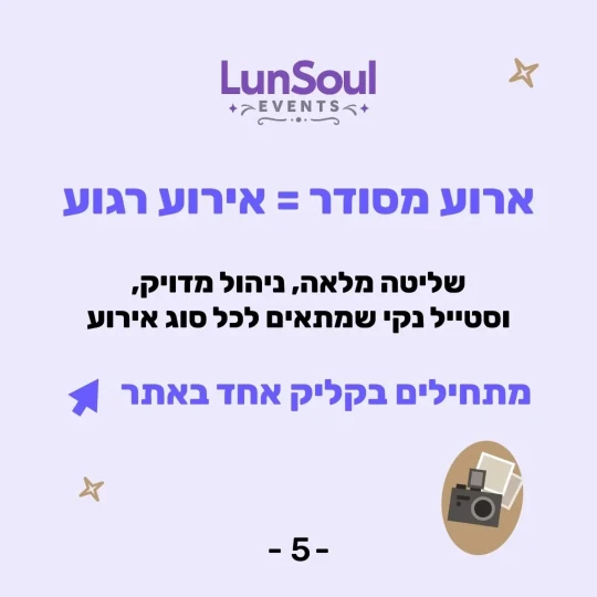 עם לונסול, אתם מתכננים את האירוע כמו מקצוענים – בלי הצורך להיות כאלה. פותחים אירוע בכמה קליקים, והמערכת כבר עובדת בשבילכם.