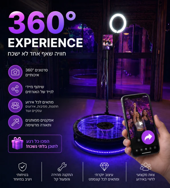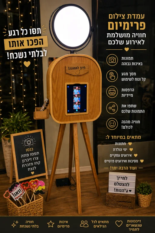 מזכרות וחוויות ויראליות: עמדת צילום 360, צילום רטרו, מגנטים ושולחנות משחק.